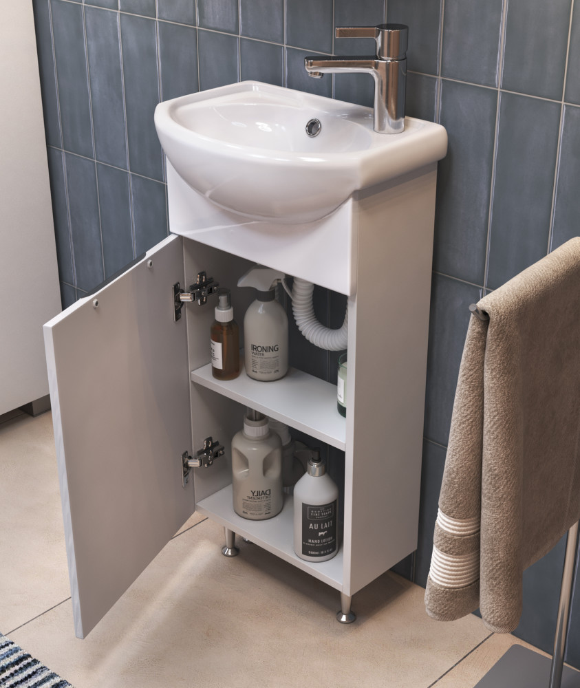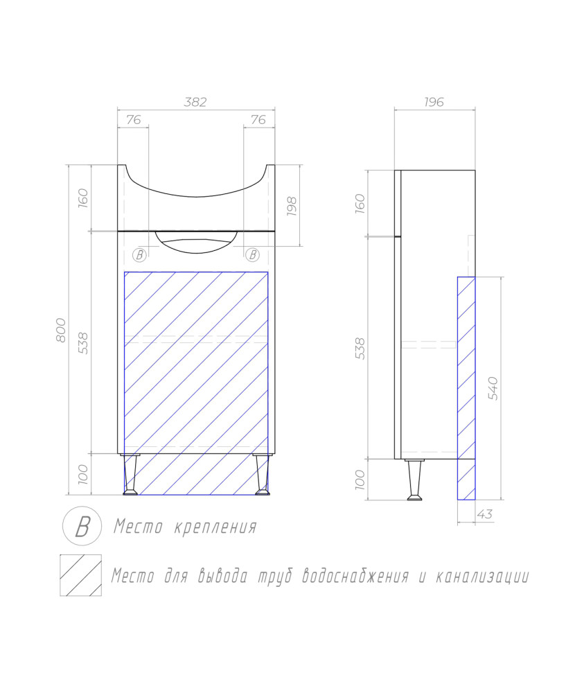 Ширина 382 мм и глубина 196 мм делают тумбу идеальной для небольших помещений и санузлов.