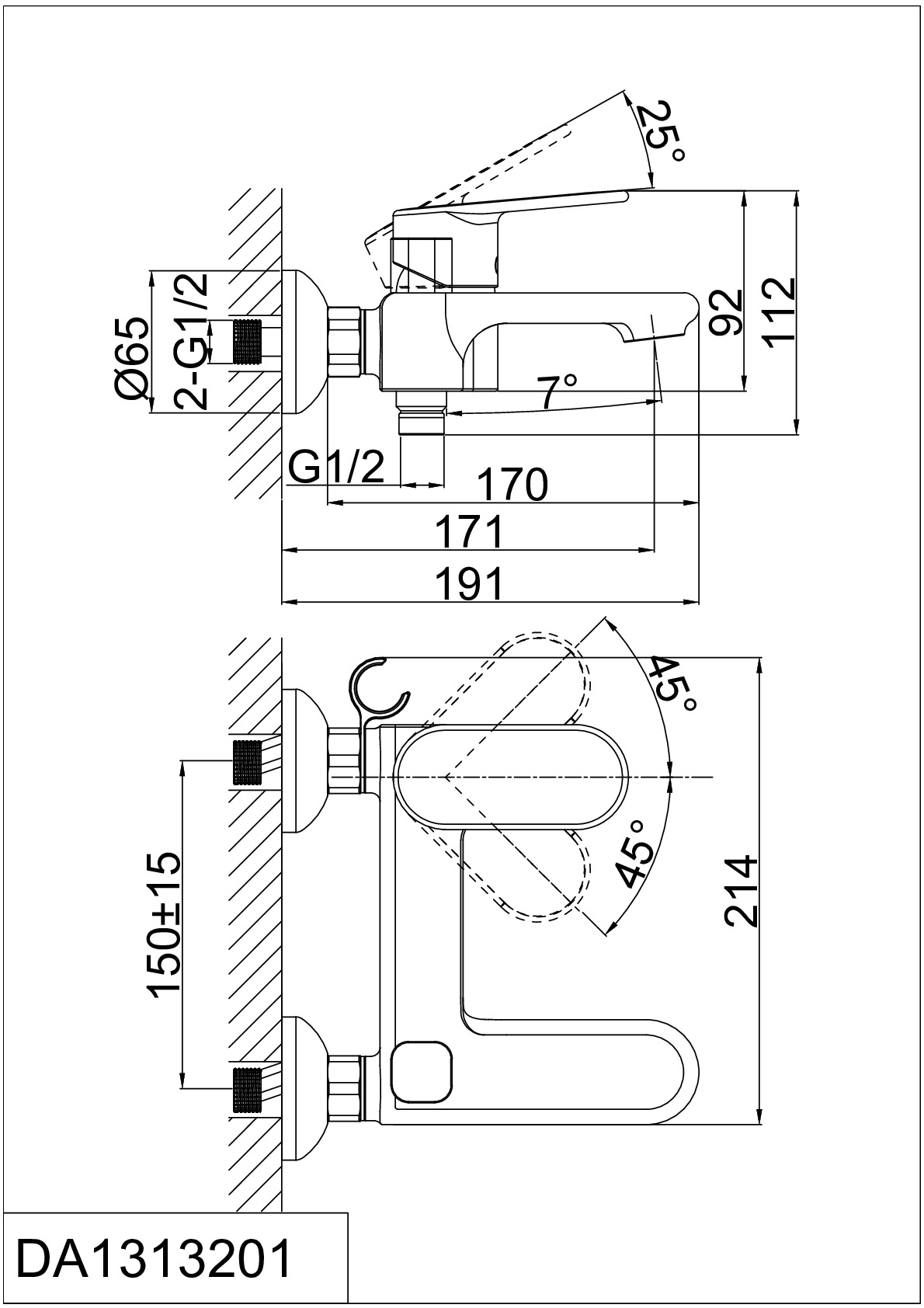 Смеситель для ванны с душем D&K Rhein.Speyer DA1313201 короткий излив