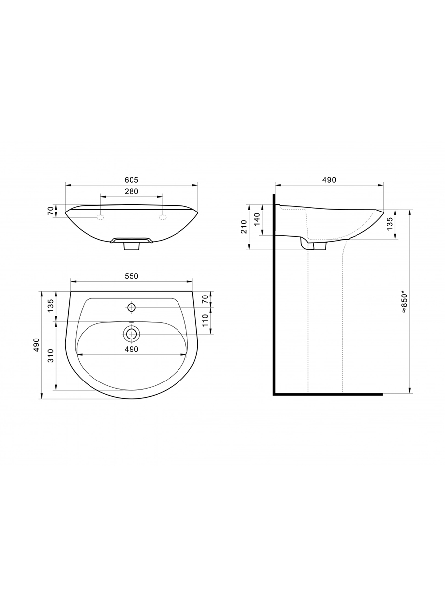 - Идеальна в качестве раковины подвесной 60 см для средних и компактных ванных комнат.