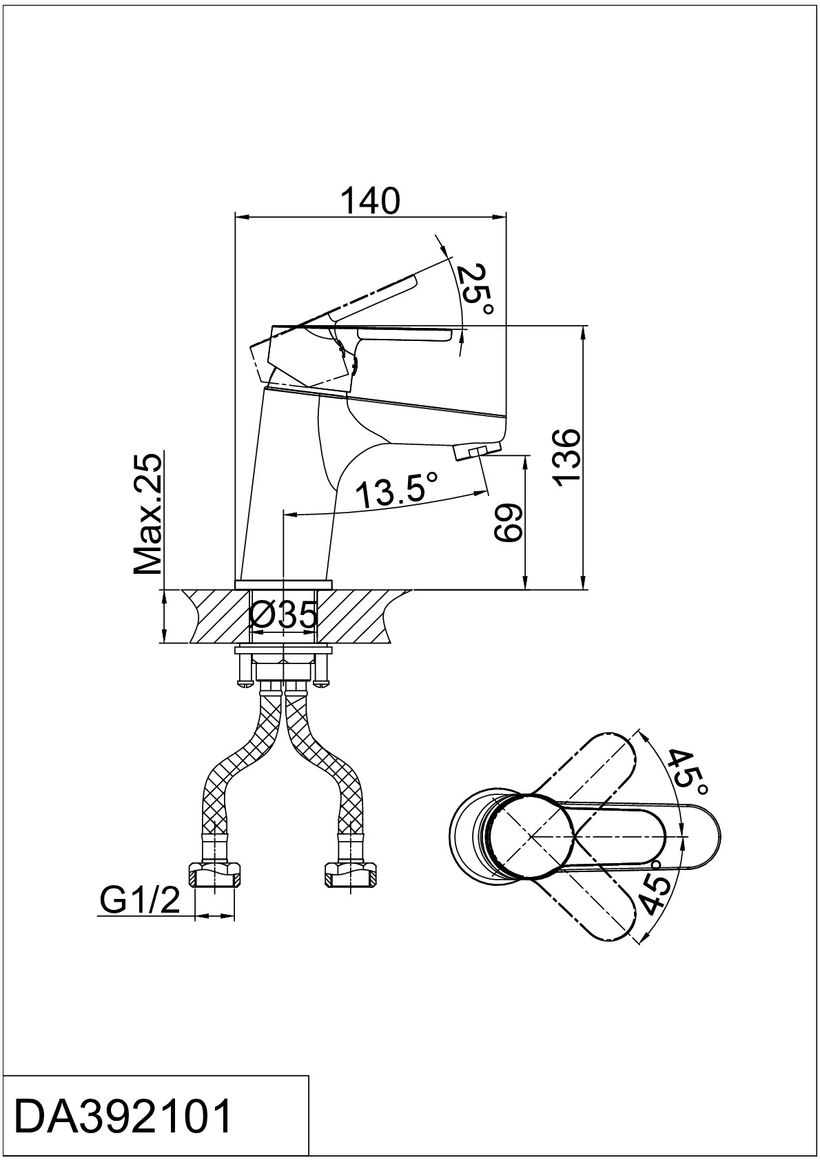 Длина излива: 140 мм.