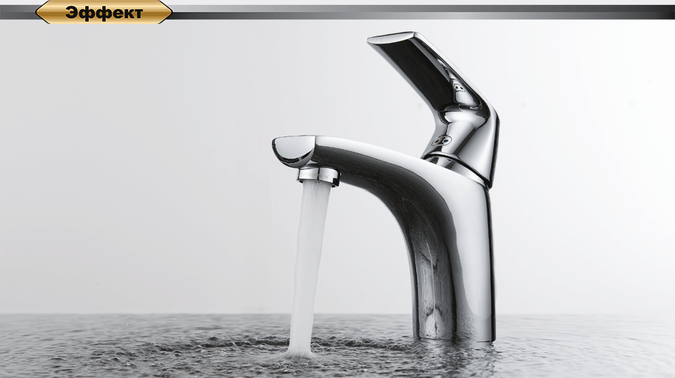 Пластиковый аэратор установлен под углом для комфортной эксплуатации, уменьшает расход воды.