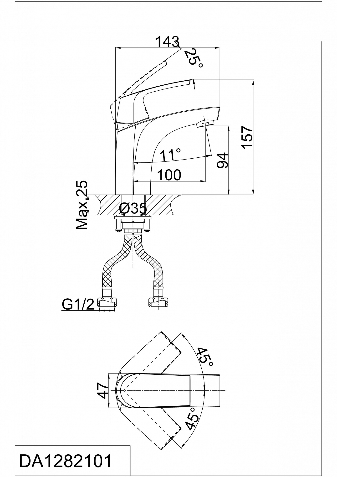 Длина излива: 143 мм.
