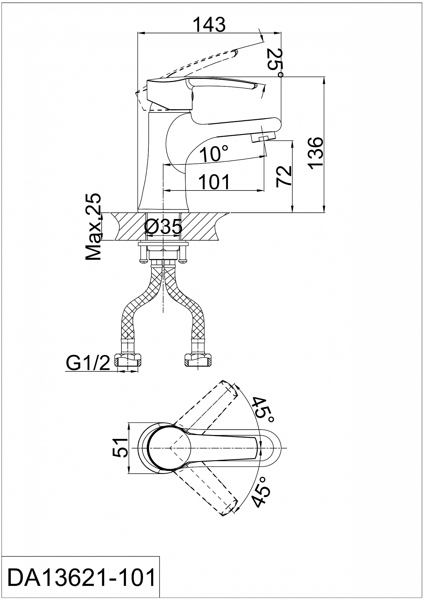 Длина излива: 143 мм.