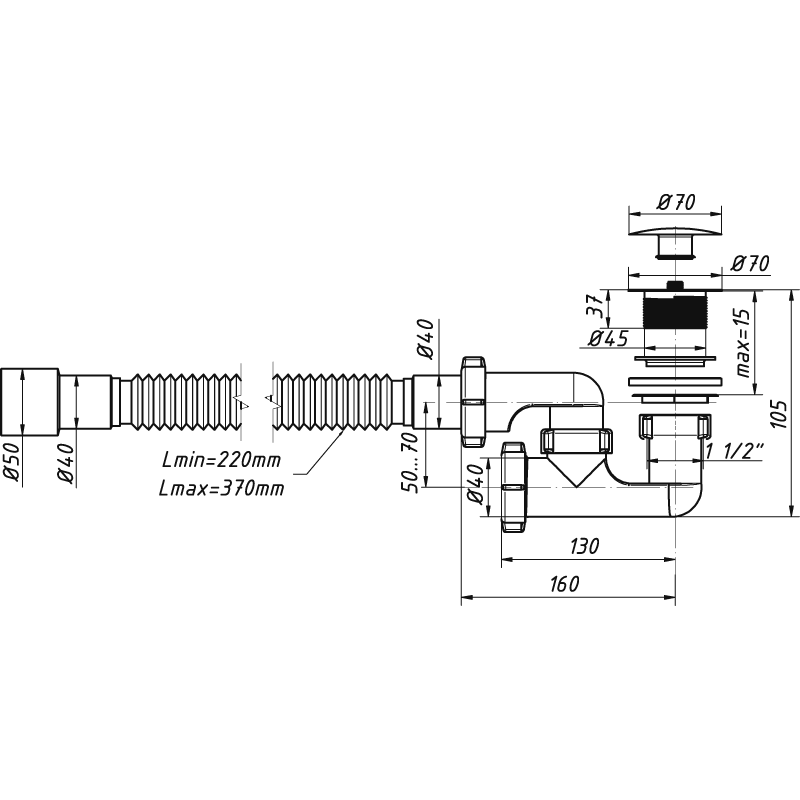 Сифон ORIO для душевого поддона 1 1/2 40 регулир,клик-клак,с гиб.тр 40/50 А-25589