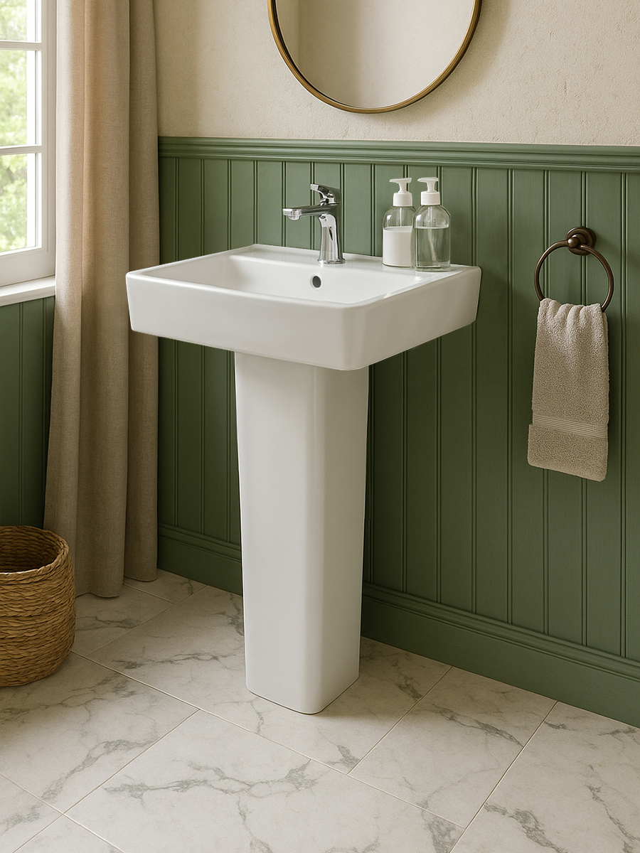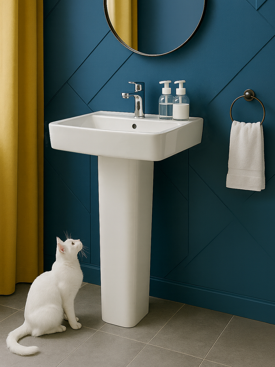 Можно установить как подвесную раковину без тумбы или подвесного типа