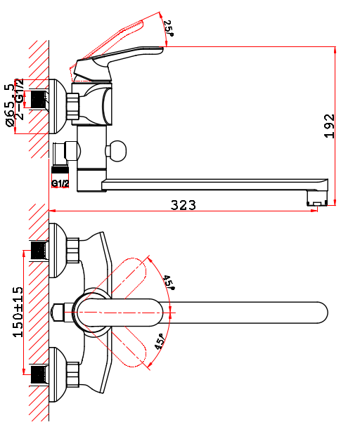 Смеситель для ванны VRI Rialto HG900633 д.н.