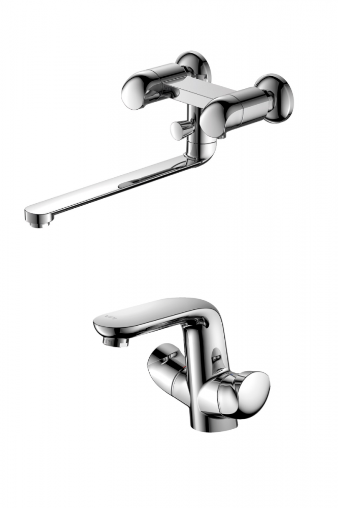 Смеситель для ванны : гибкий шланг в оплетке из нержавеющей стали 150 см с защитой от перекручивания, держатель для лейки, лейка для душа, латунные эксцентрики с отражателями, комплект крепежа Смеситель для раковины : гибкая подводка, комплект крепежа