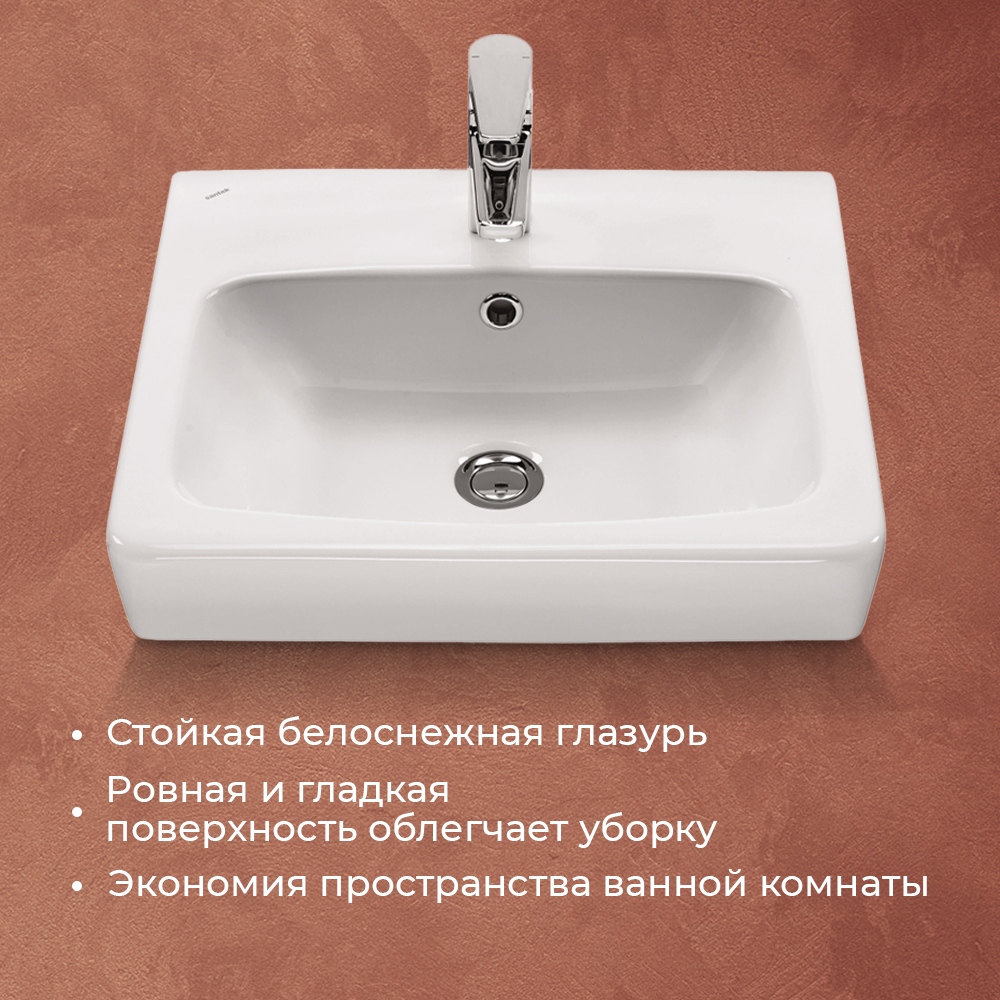 Раковина Santek Нео 50 — стильная прямоугольная раковина подвесного типа для современной ванной
