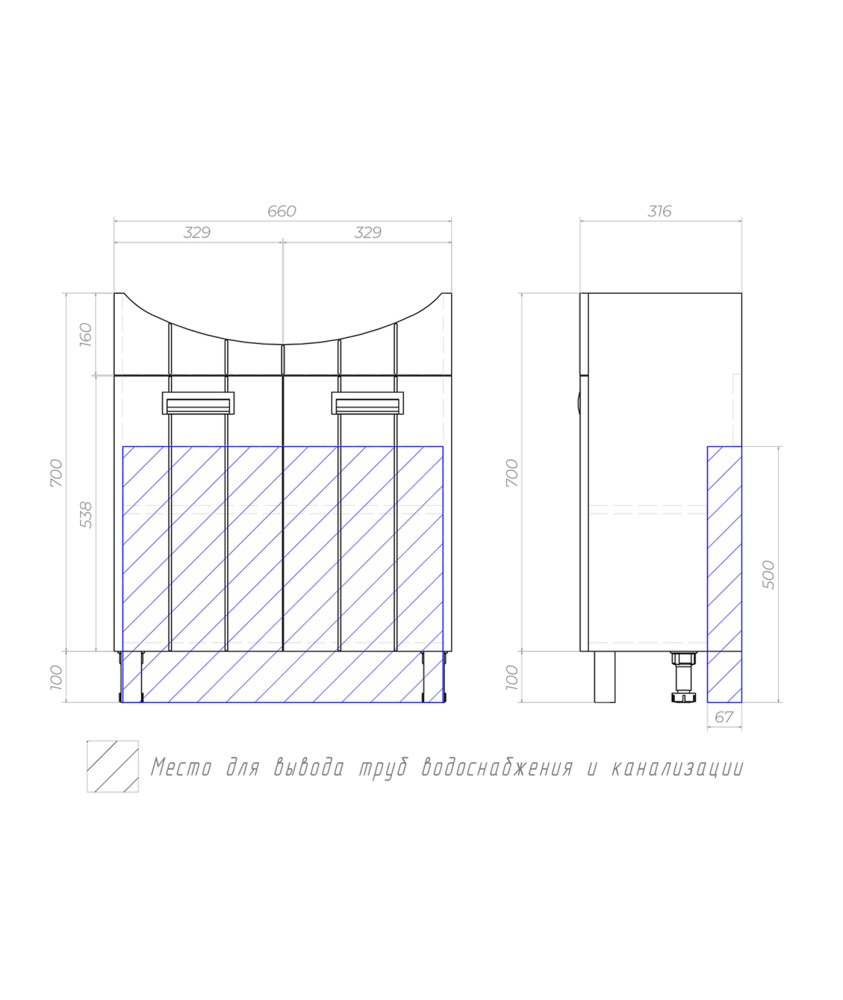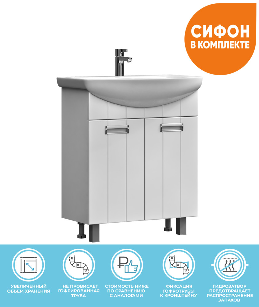 2 дверцы, 1 полка ЛДСП, 2 квадратные регулируемые опоры, 2 кухонные опоры, петли с механизмом доводчика, сифон