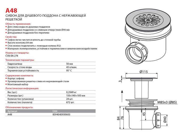 Для душевых поддонов со сливным отверстием ?90 мм