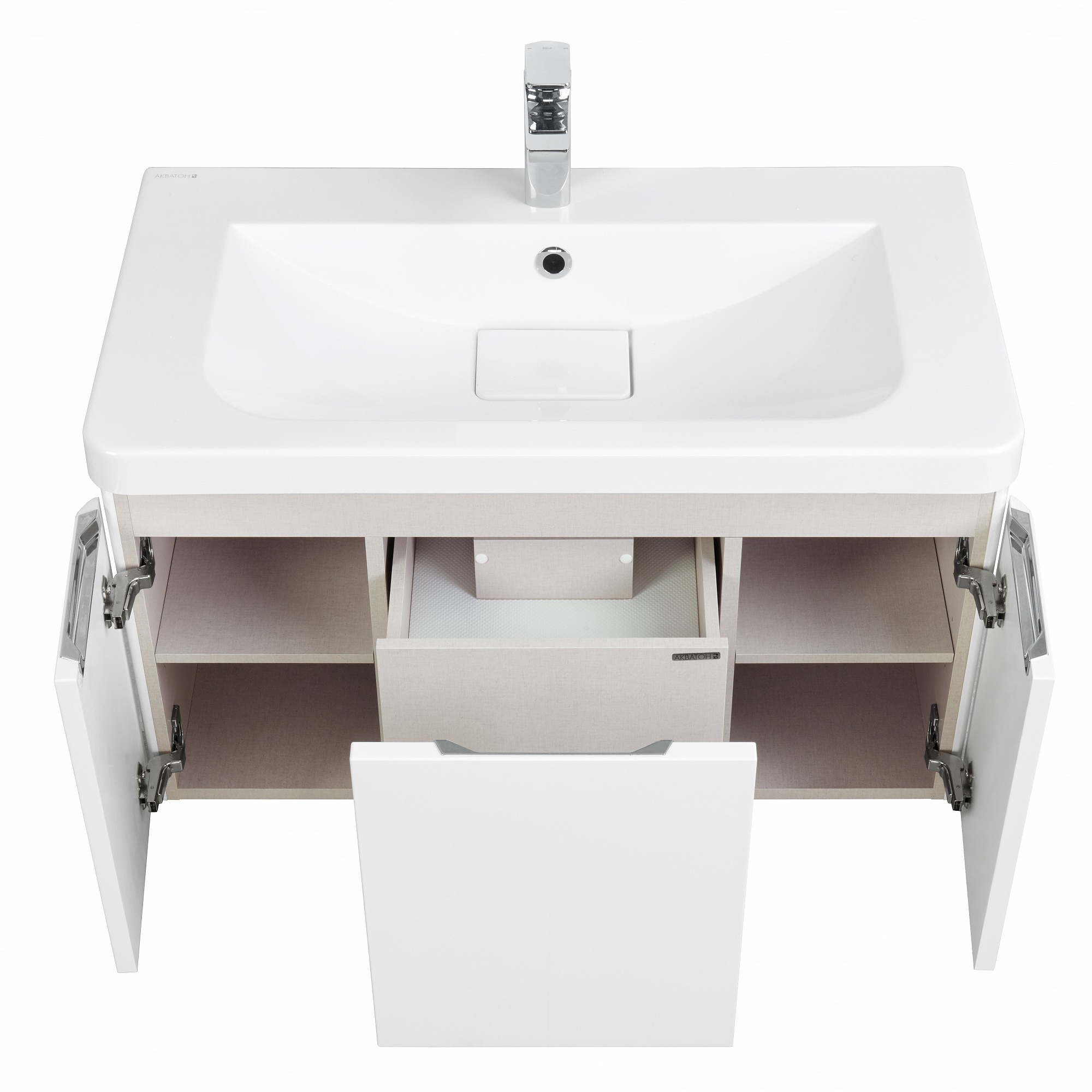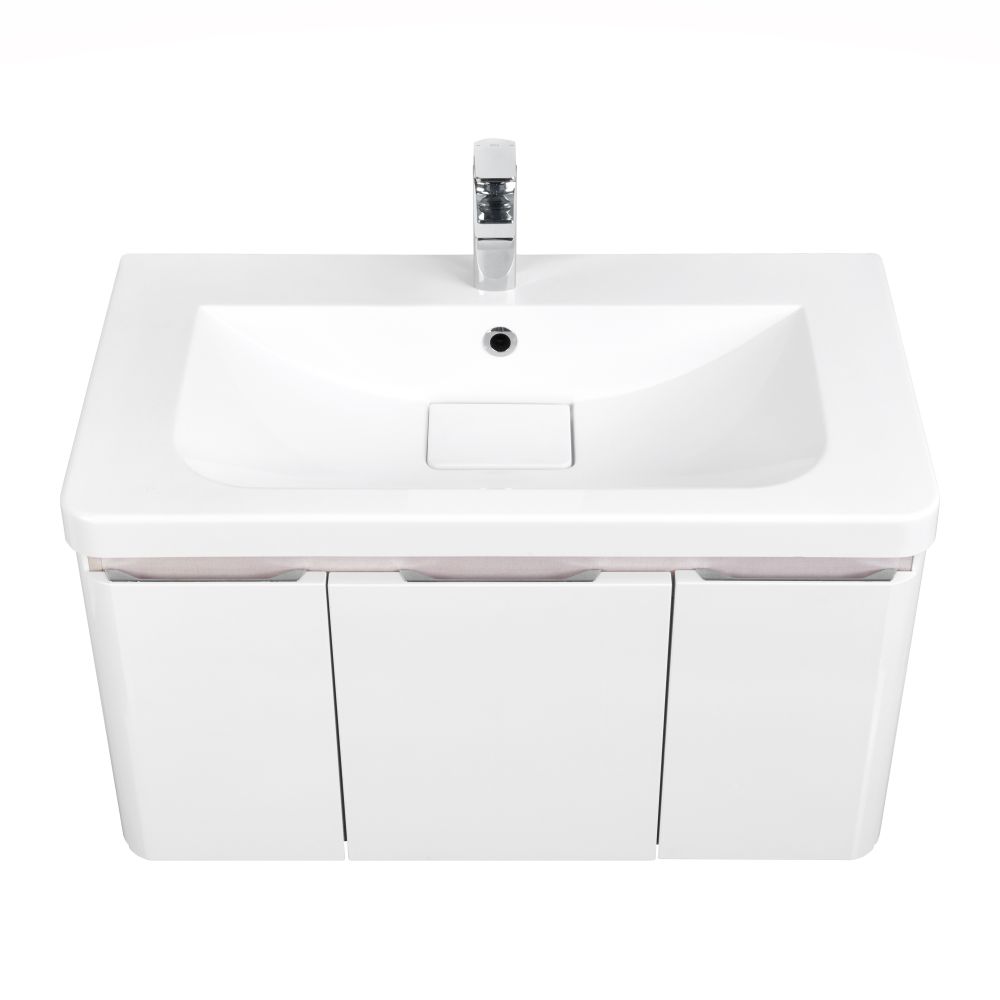 Достаточно компактная подвесная тумба под раковину Шерилл 85 от AQUATON отражает современное понимание удобства и комфорта в ванной комнате. Данная модель сочетает в себе стильный лаконичный дизайн и безупречное исполнение. Корпус из влагостойкой ЛДСП и фасады из МДФ покрыты белой глянцевой краской ультрафиолетового отверждения. Плавные линии, присутствующие в каждом элементе, делают её легкой и воздушной. Скругленные углы и ручки, встроенные в фасады обеспечивают безопасность тумбы, а продуманный функционал и система внутренней организации делают её удобной. Модель включает двустенный ящик полного выдвижения с системой плавного закрывания, внутренний ящик с системой push-to-open, а также дополнительные отсеки с полками, скрытые за боковыми распашными фасадами. Таким образом, каждая вещь будет на своем месте
