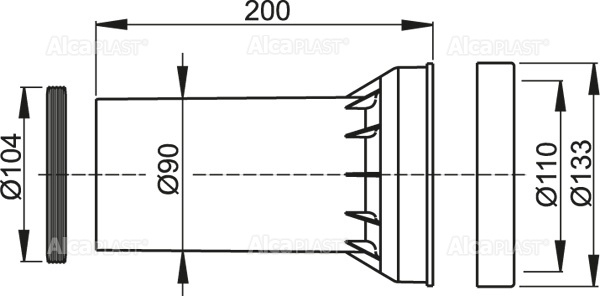Патрубок сливной для подключения подвесного унитаза к стокам, полипропилен, Ø90 мм, с прокладками Прокладка 2 шт.