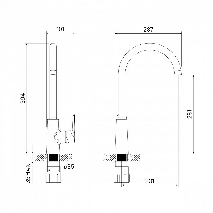 Высота излива, см