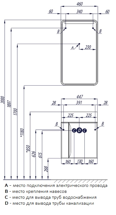 Ручка- 1,навес -2, интегрированная полка-1, Фасад-створка - 1, петли с интегрированной системой плавного закрывания