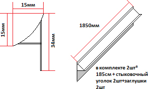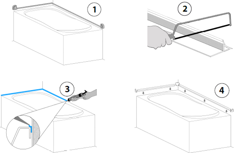 Бордюр для ванны белый 1,85м – 2 шт; набор белых заглушек – 2 шт; набор белых стыковочных углов (наружный, внешний) – 2 шт
