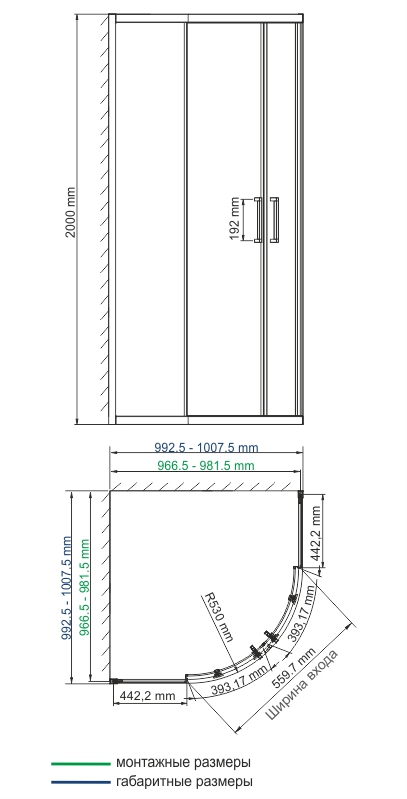 Ширина входа, см