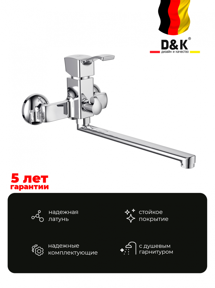 Смеситель для ванны с душем D&K Rhein.Bach DA1473301 длинный излив