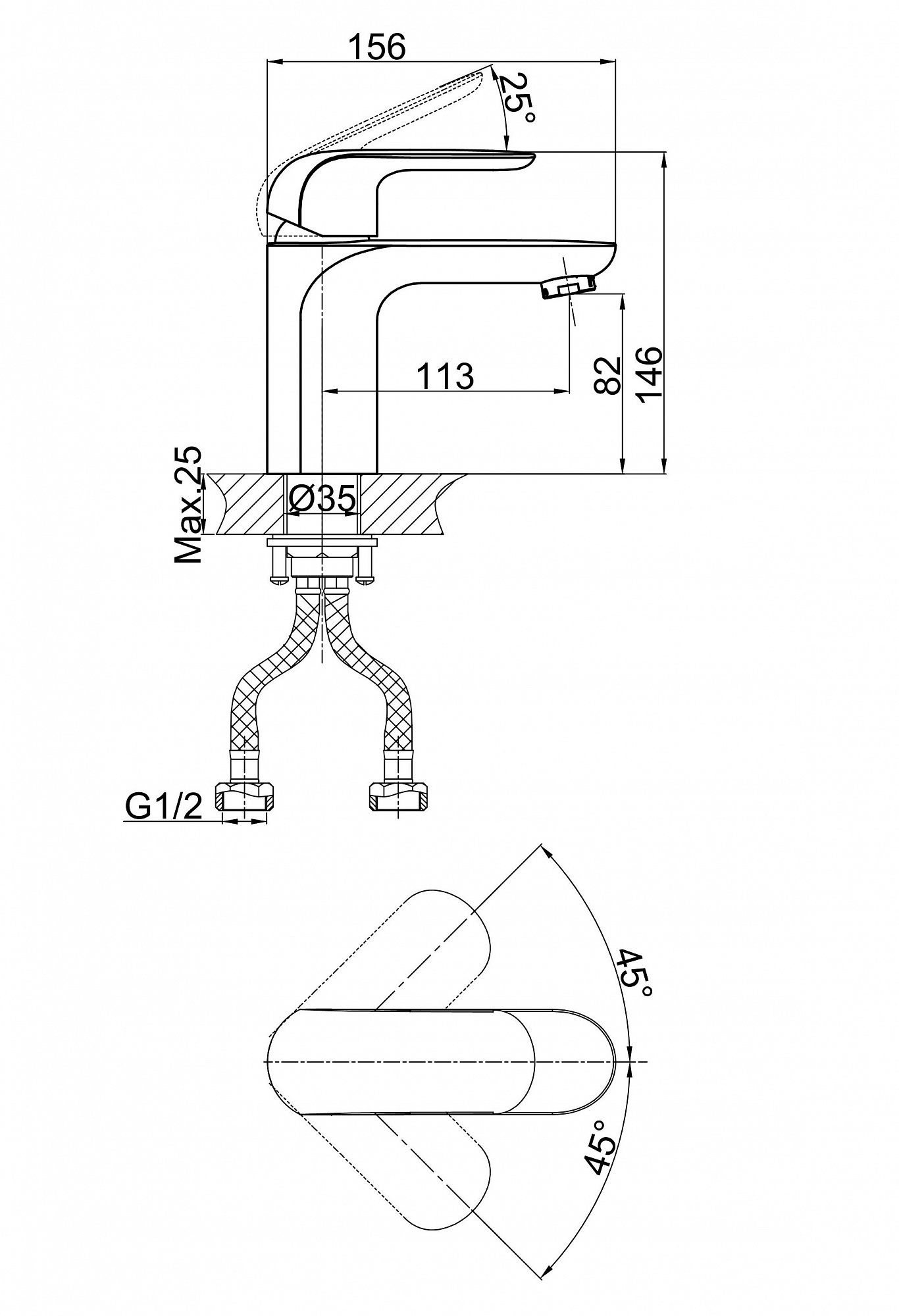 Пластиковый аэратор установлен под углом для комфортной эксплуатации, уменьшает расход воды.