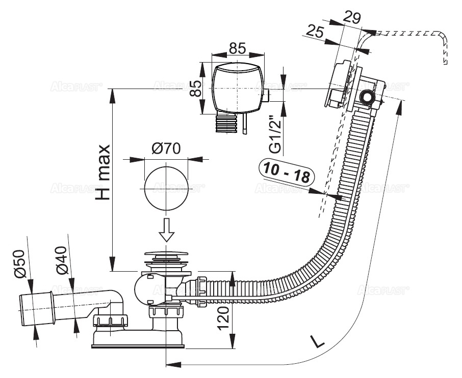Сифон для ванны AlcaPlast A565KM1