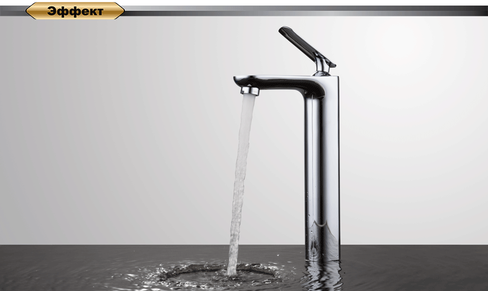 Пластиковый аэратор установлен под углом для комфортной эксплуатации, уменьшает расход воды.
