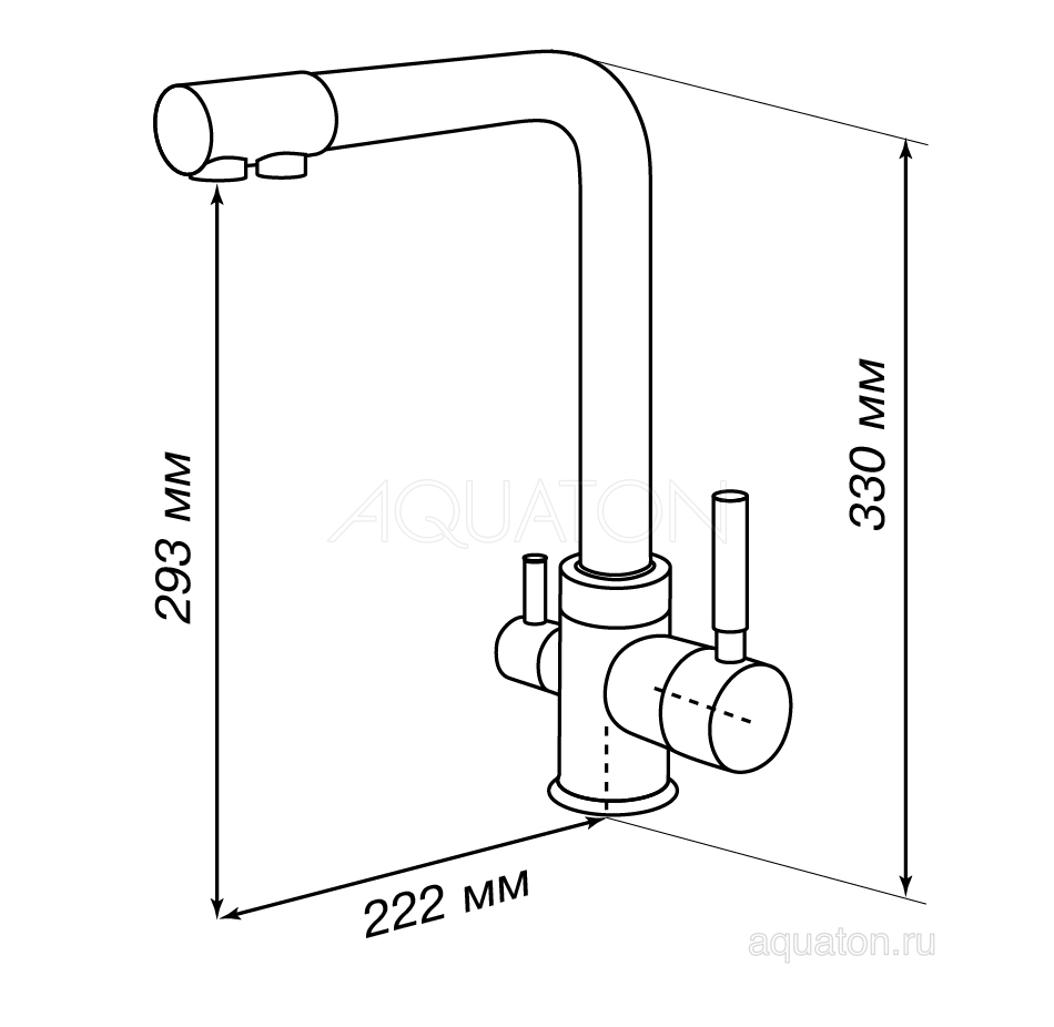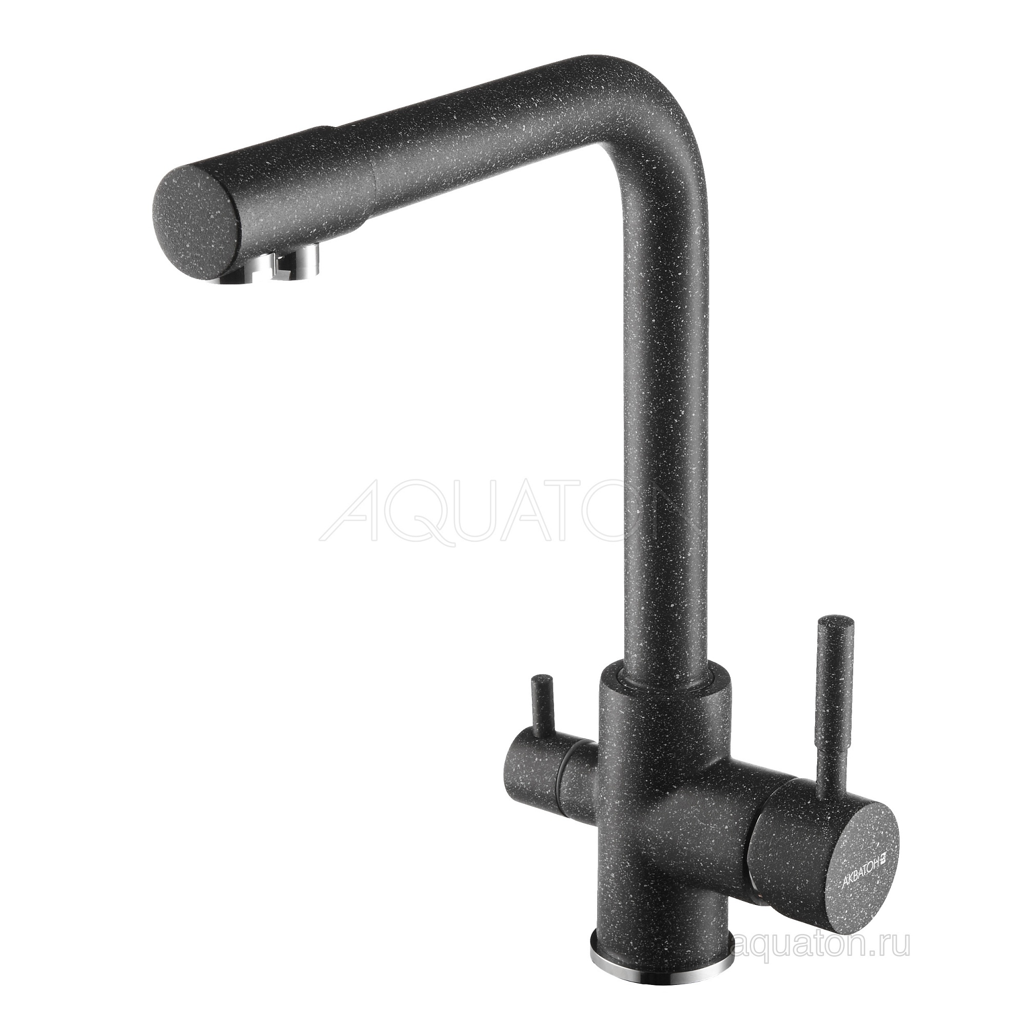 Подключение к фильтру питьевой воды. Совмещенный излив. Цвет смесителя специально подобран в соответствии с цветом кухонных моек Акватон из литьевого камня. Корпус смесителя выполнен из латуни, что гарантирует долгий срок эксплуатации изделия, сопротивление коррозии и безопасность для человека. Декоративное цветное покрытие отличается высокой силой сцепления с поверхностью смесителя, обеспечивая устойчивость к царапинам и сколам