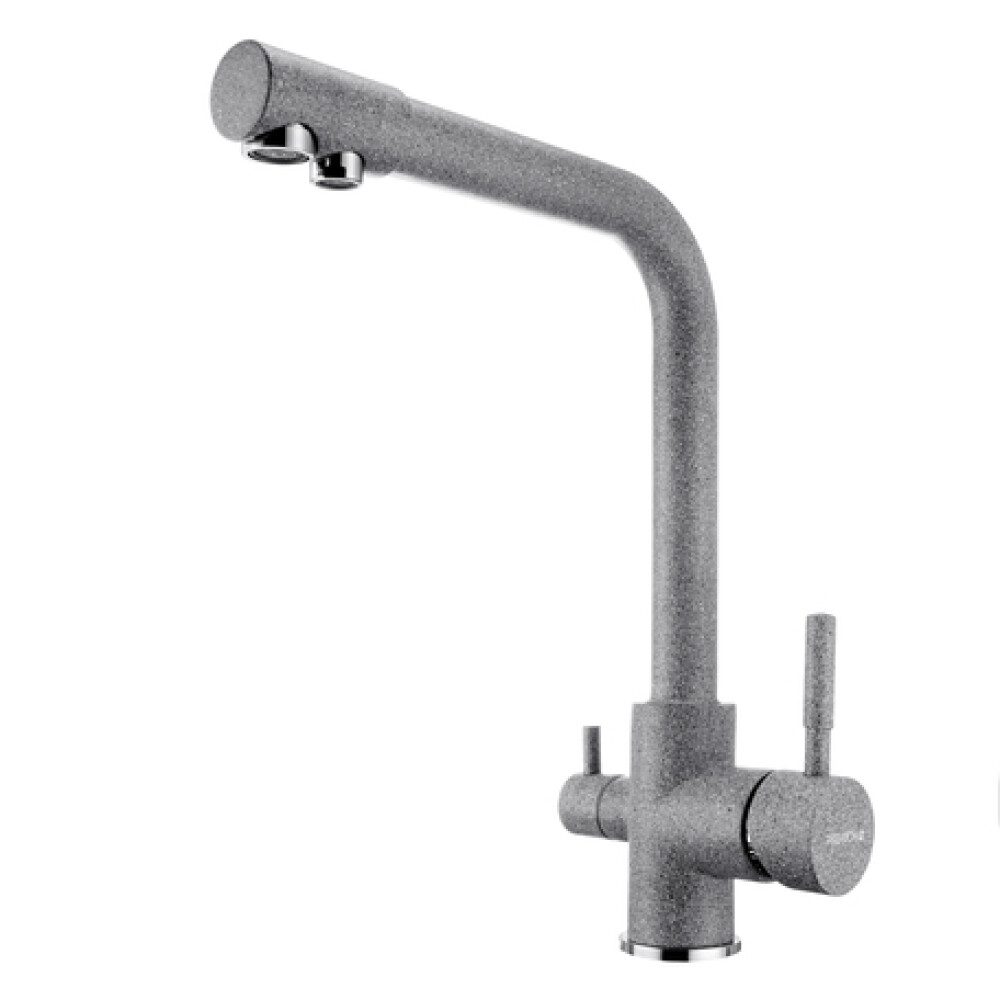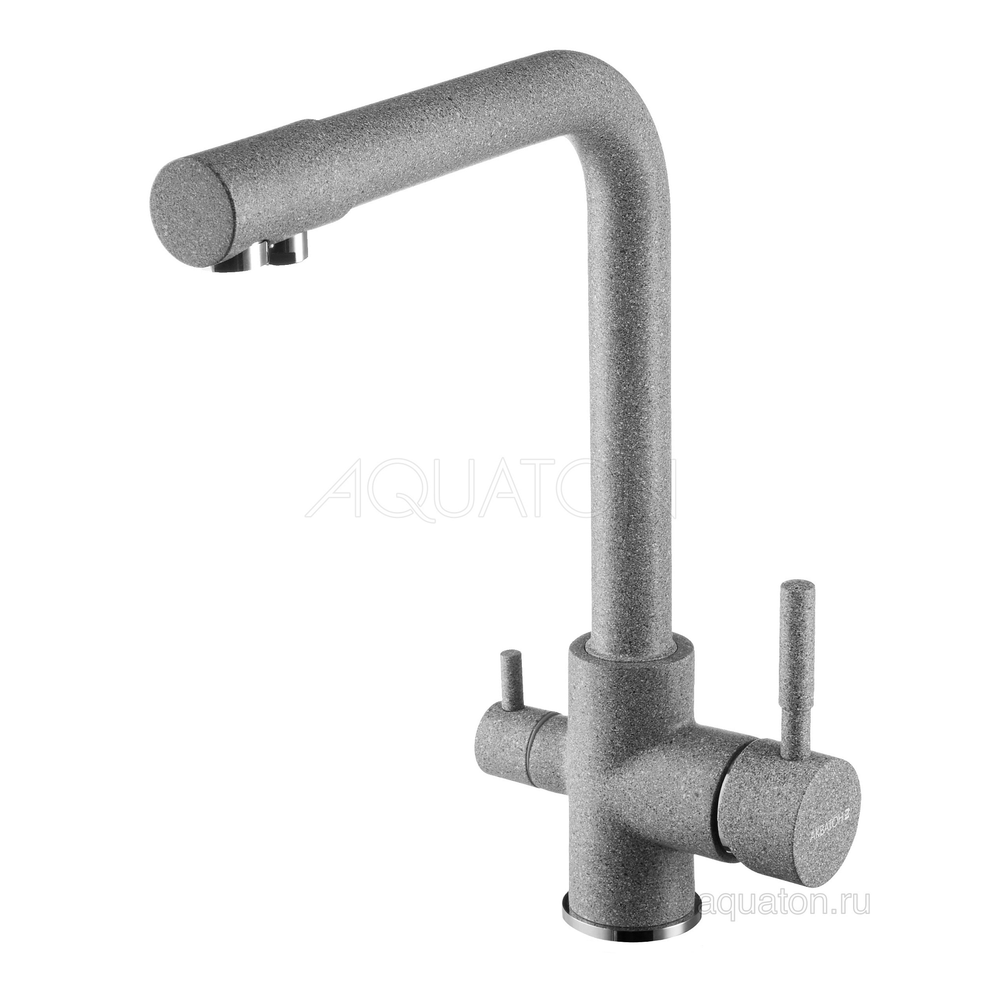 Подключение к фильтру питьевой воды. Совмещенный излив. Цвет смесителя специально подобран в соответствии с цветом кухонных моек Акватон из литьевого камня. Корпус смесителя выполнен из латуни, что гарантирует долгий срок эксплуатации изделия, сопротивление коррозии и безопасность для человека. Декоративное цветное покрытие отличается высокой силой сцепления с поверхностью смесителя, обеспечивая устойчивость к царапинам и сколам