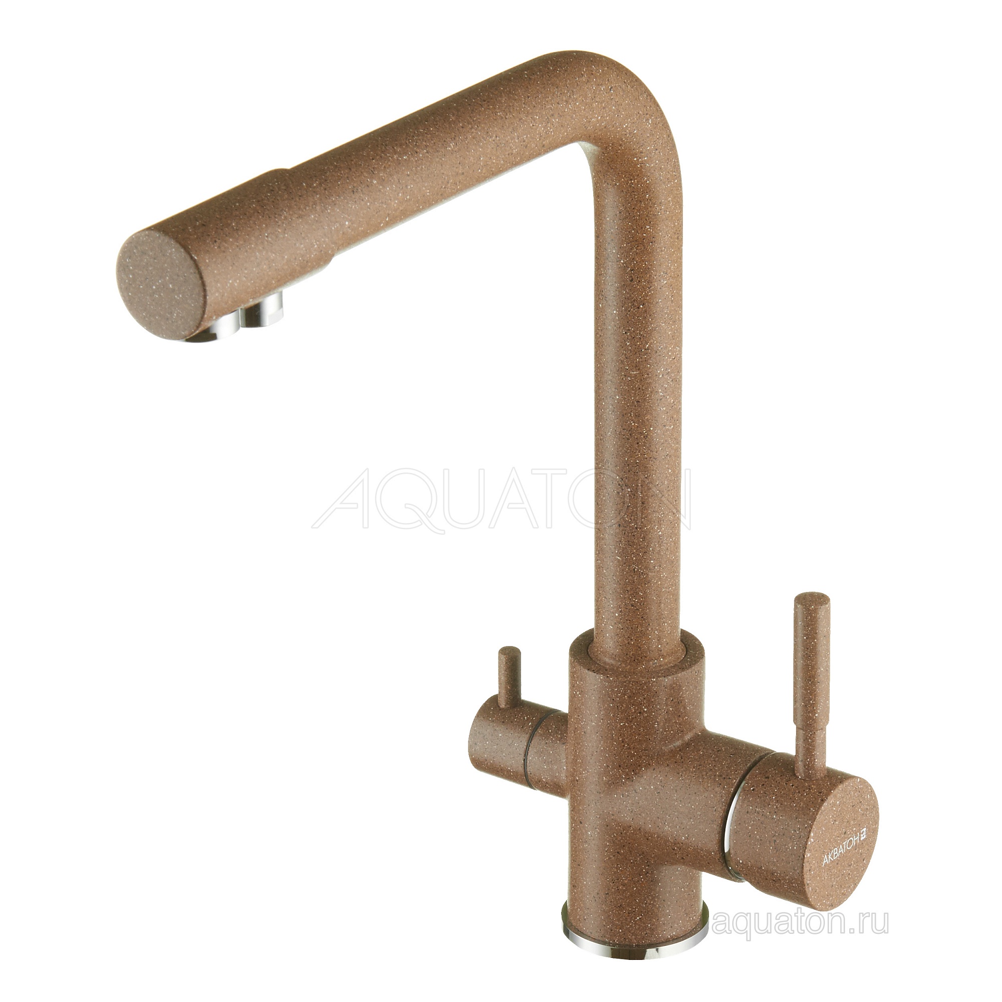 Подключение к фильтру питьевой воды. Совмещенный излив. Цвет смесителя специально подобран в соответствии с цветом кухонных моек Акватон из литьевого камня. Корпус смесителя выполнен из латуни, что гарантирует долгий срок эксплуатации изделия, сопротивление коррозии и безопасность для человека. Декоративное цветное покрытие отличается высокой силой сцепления с поверхностью смесителя, обеспечивая устойчивость к царапинам и сколам