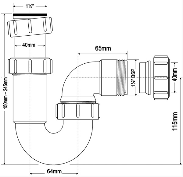 Сифон трубный McAlpine MRSK15 Р-образный (1 1/2"х40мм) без выпуска