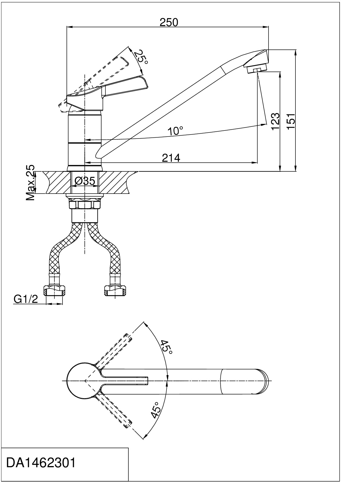 Длина излива: 250 мм.