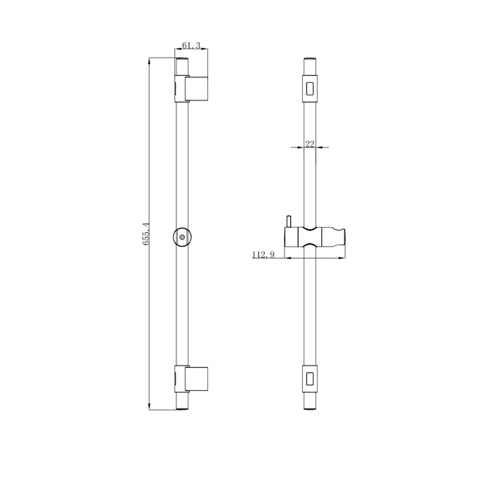 Стойка из нержавеющей стали, диаметр 22 мм, длина - 650мм, без хром-никелевого покрытия. Свободное верхнее крепление. Вентильный поворотный держатель. Крепления и держатель из ABS-пластика с покрытием хром. Упаковка - полиэтиленовый пакет с картонным топпером