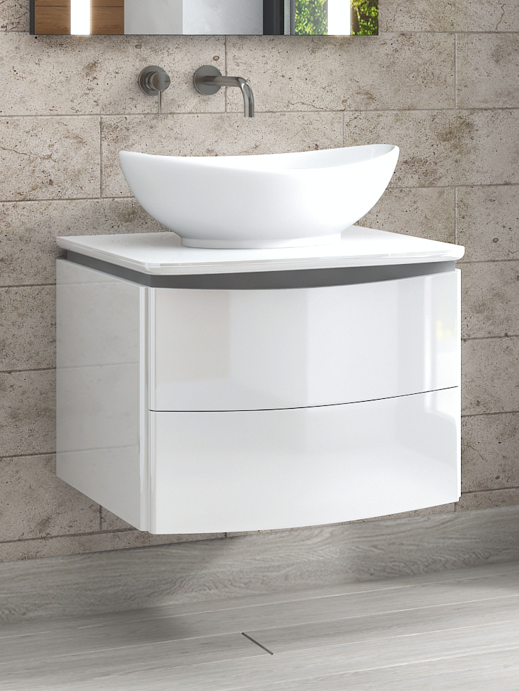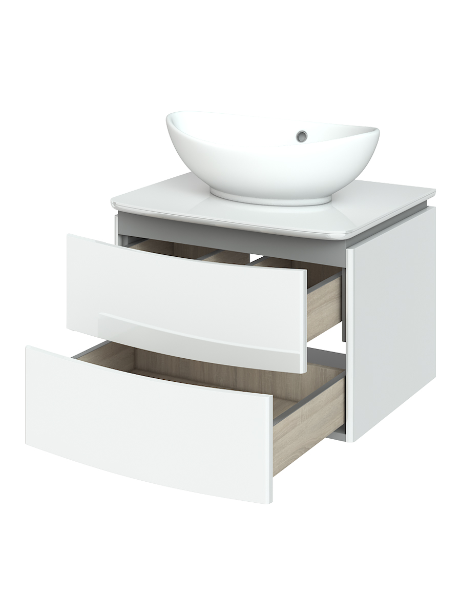 Подвесная тумба с 2 вместительныыми ящиками. Направляющие: скрытого монтажа, оснащены системой push-to-open