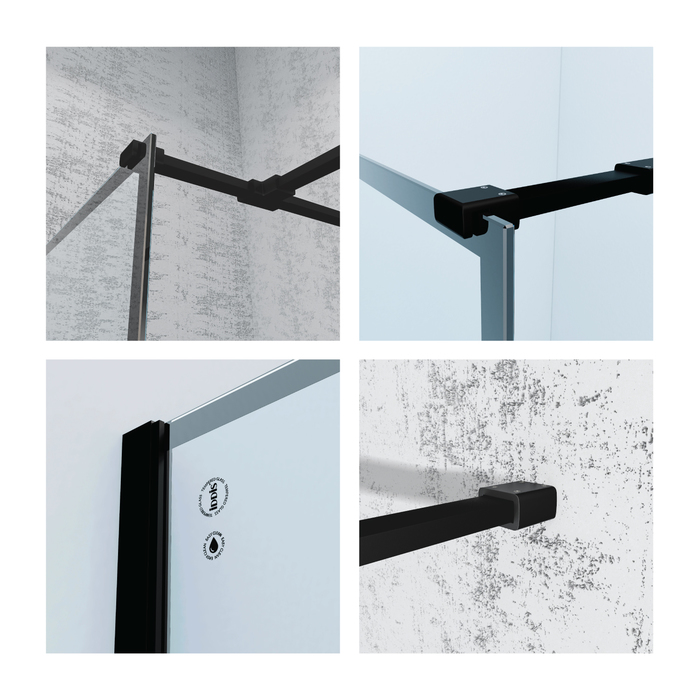 Закаленное прозрачное стекло, алюминиевый профиль, заглушки креплений.