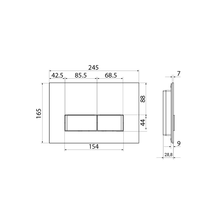 Универсальная клавиша смыва. Материал: стекло. Цвет: черный.  Хромированные кнопки Крепежная рама в комплекте. Упаковка: картонная коробка