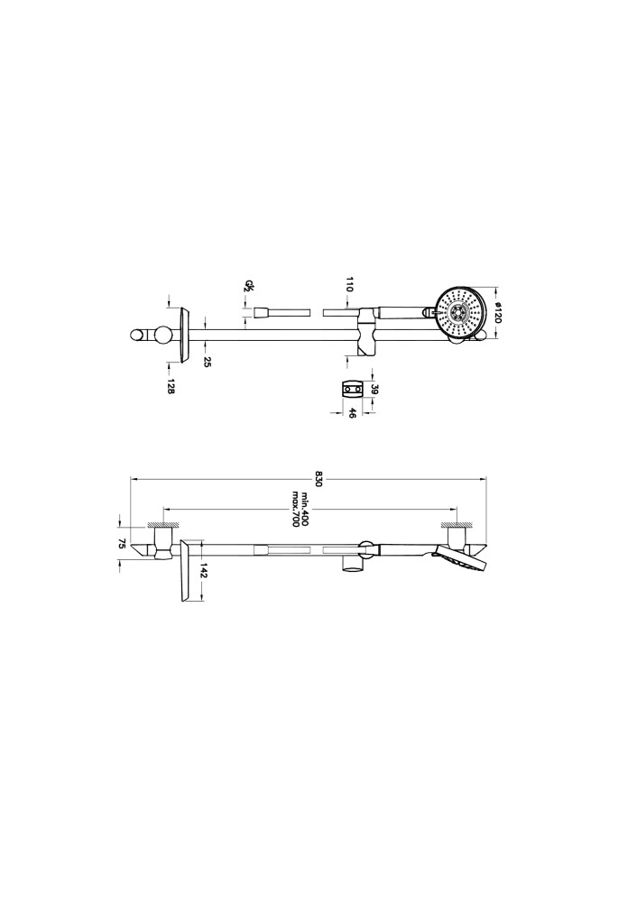 • Душевой шланг длиной 1.500 мм