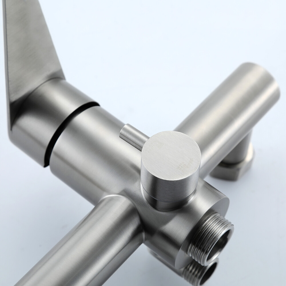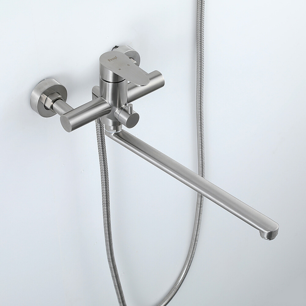Смеситель для ванны Frap F2248 — современное и практичное решение для ванной комнаты. Выполненный из прочной нержавеющей стали, он устойчив к коррозии, механическим воздействиям и ежедневной эксплуатации. Глянцевое сатиновое покрытие придаёт изделию аккуратный внешний вид и подходит к любому интерьеру в современном стиле.