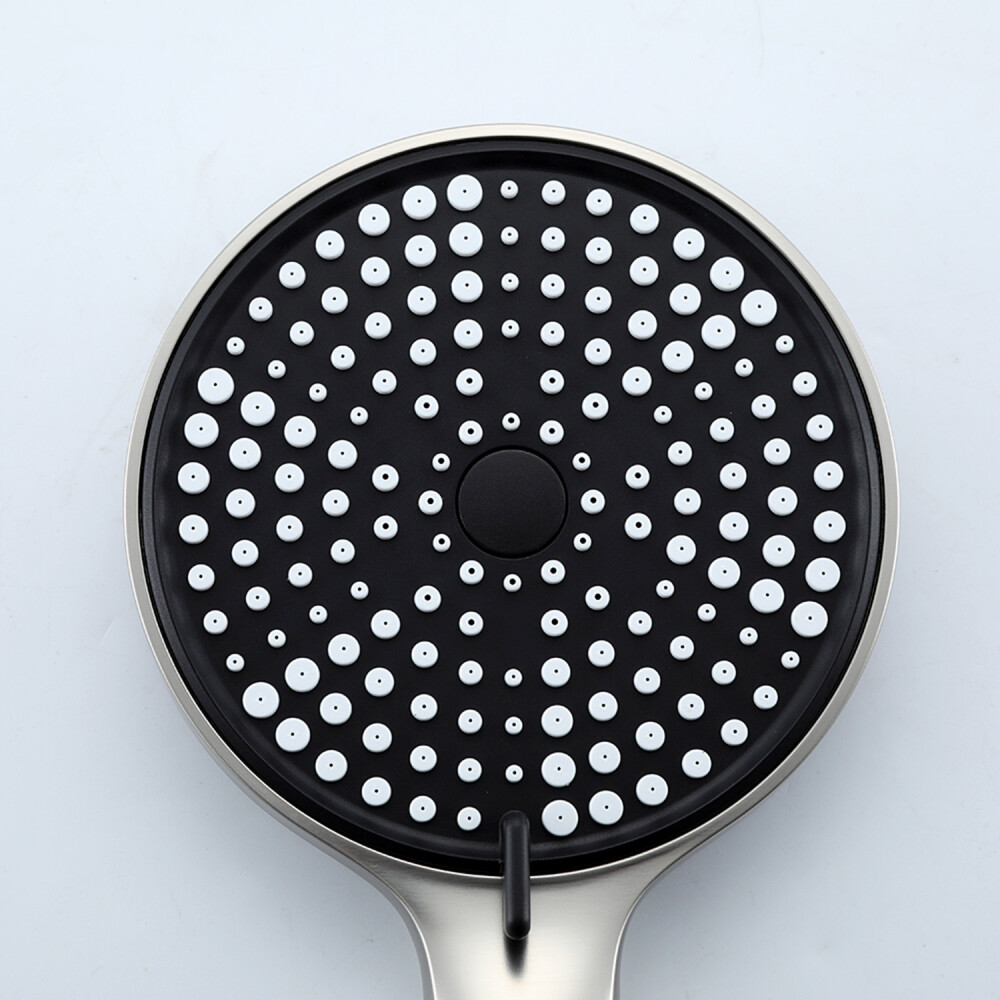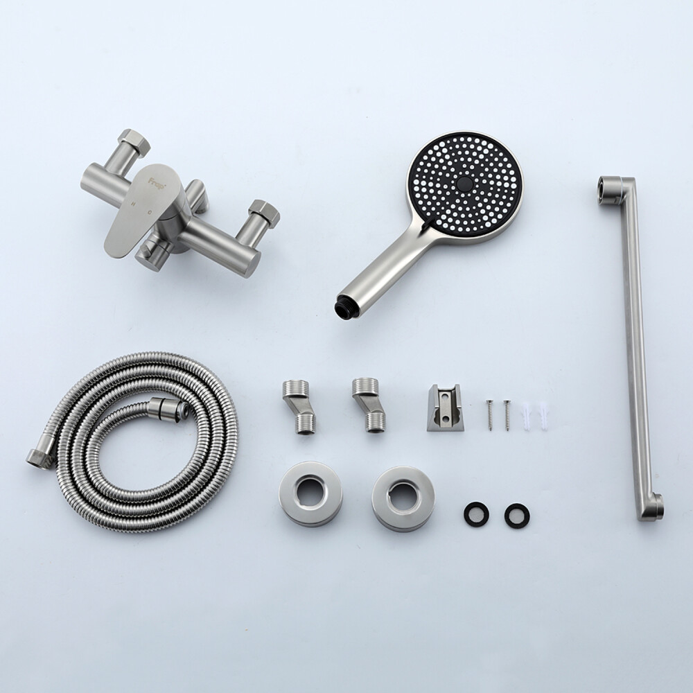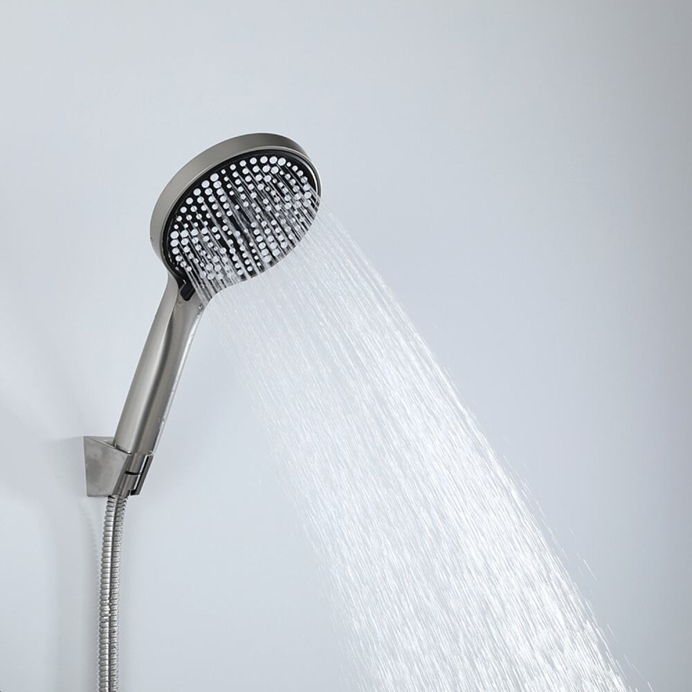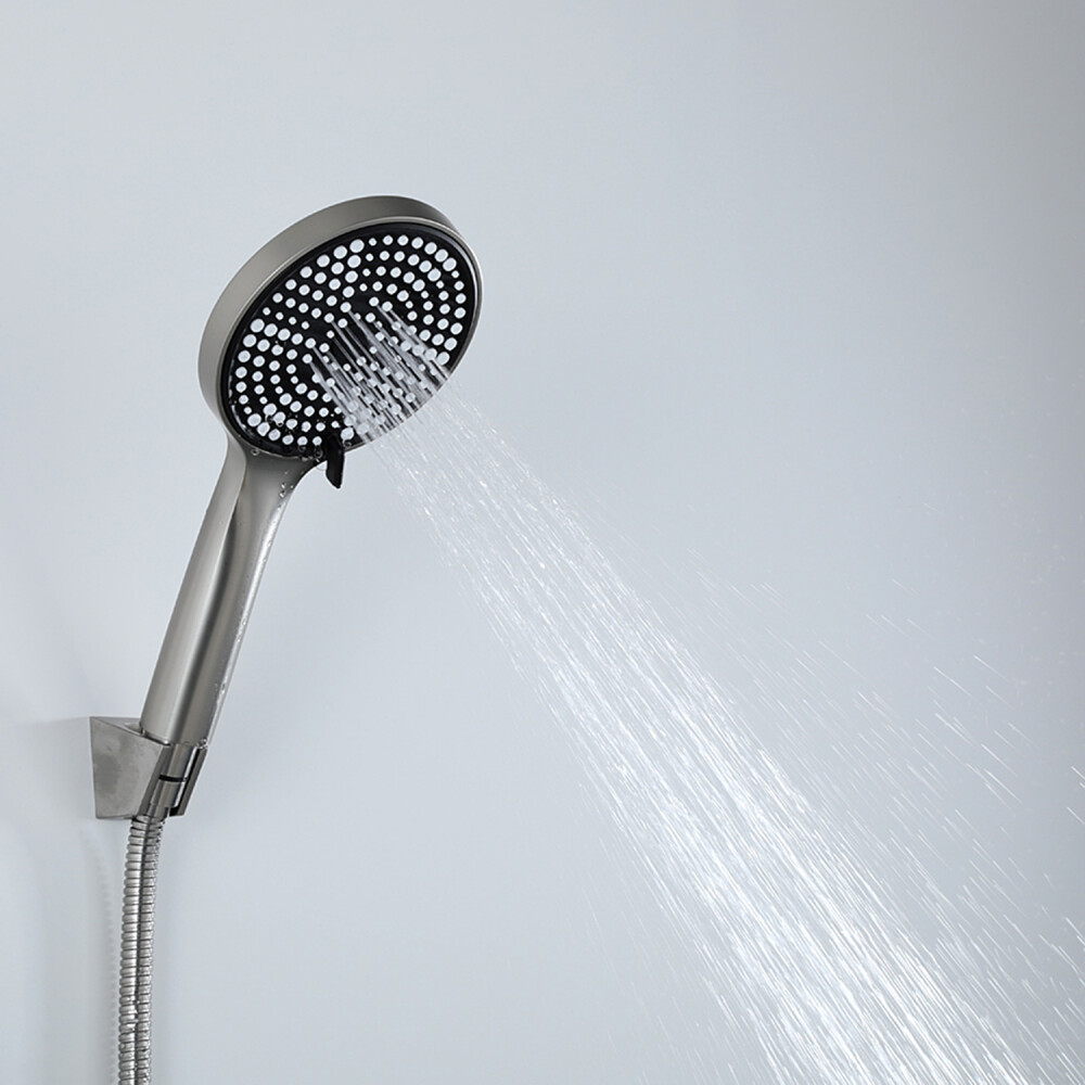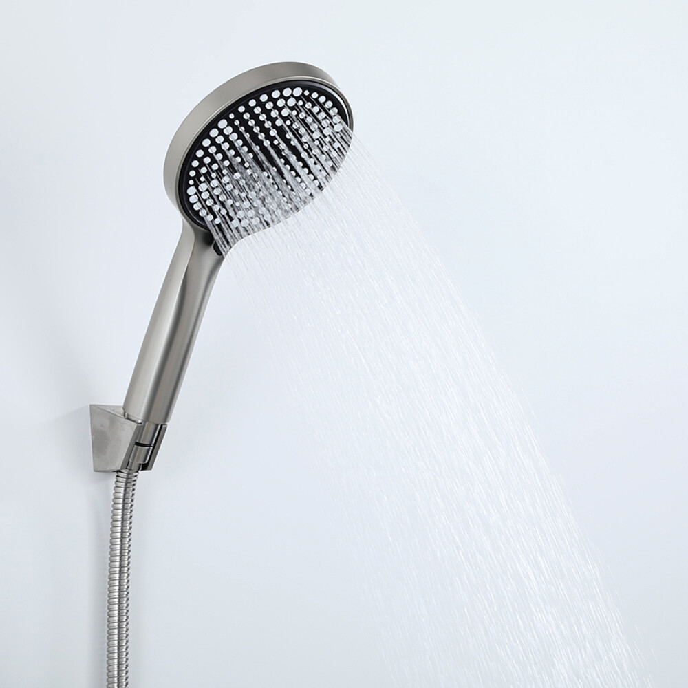 Модель оснащена переключателем-дивертором, работающим плавно и без заеданий. В комплект входит полный душевой набор: левая, металлический шланг 150 см с защитой от перекручивания и настенный держатель. Анти-известковая система облегчает уход, предотвращая образование налёта на лейке.