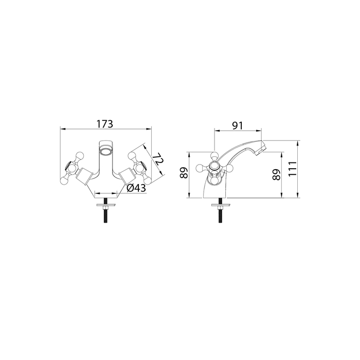 Компактный (всего 111 мм в высоту) смеситель для умывальника Duplex традиционного дизайна с удобными крестообразными ручками. Угол поворота ручек 180о обеспечивает точную регулировку температуры и напора воды, а термоизоляция не позволяет им нагреваться – взрослые и особенно дети защищены от случайных ожогов. Надежный фиксированный излив подойдет для неглубоких раковин.
