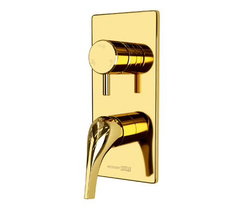 Смесители Sauer – акцент роскоши в интерьере ванной комнаты. Утонченный корпус, который заканчивается изящной ручкой, в золотом блестящем покрытии станут отражением души хозяина интерьера, человека с изысканным вкусом. Корпус смесителей произведен из высококачественной латуни с содержанием меди не менее 59%. Латунь является наилучшим материалом для изготовления корпуса смесителей, характеризуется долговечностью и прочностью. PVD-покрытие "глянцевое золото" Очищенное заранее изделие, помещается в вакуум, где с помощью конденсации пара наносится покрытие. При этом, конденсат пара содержит частицы необходимых металлов для получения нужного цвета. далее наносится лак и изделие отправляется сушиться. Керамический поворотный переключатель Работает при нулевом давлении. Для переключения на душ или излив необходимо повернуть переключатель в любую сторону на 90°. Керамический картридж 35 и 40 мм В смесителях используется керамический картридж 35 мм, Sedal (Испания). Все картриджи выдерживают 500 000 рабочих циклов (открытий / закрытий). Встроенный аэратор Neoperl HONEYCOMB пластиковый для равномерного распределения струи. Аэраторы Neoperl HONEYCOMB отличаются прочностью, не подвержены разрушению и образованию известковых отложений. Аэратор можно снять и почистить, для этого его необходимо просто открутить. К некоторым смесителям входит в комплект специальный ключ для аэратора. 1-функциональная лейка Лейки с системой защиты от известковых отложений. Гибкая подводка Sedal (Испания), с резьбой G½. Плавный ход металлической ручки позволяет точно и комфортно регулировать температуру и напор воды. Стандарт качества Смесители WasserKRAFT соответствуют российским и европейским стандартам, что подтверждено добровольным сертификатом РСТ (№ РОСС DE.AE95.H01093). Гарантия 5 лет!