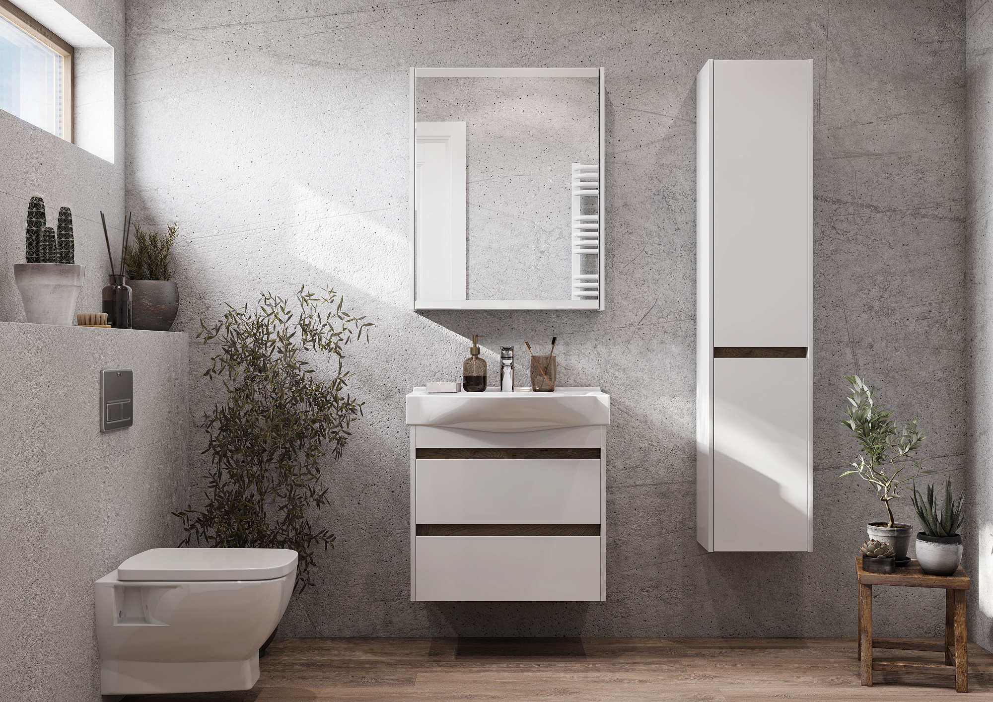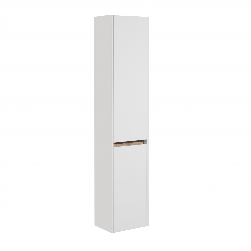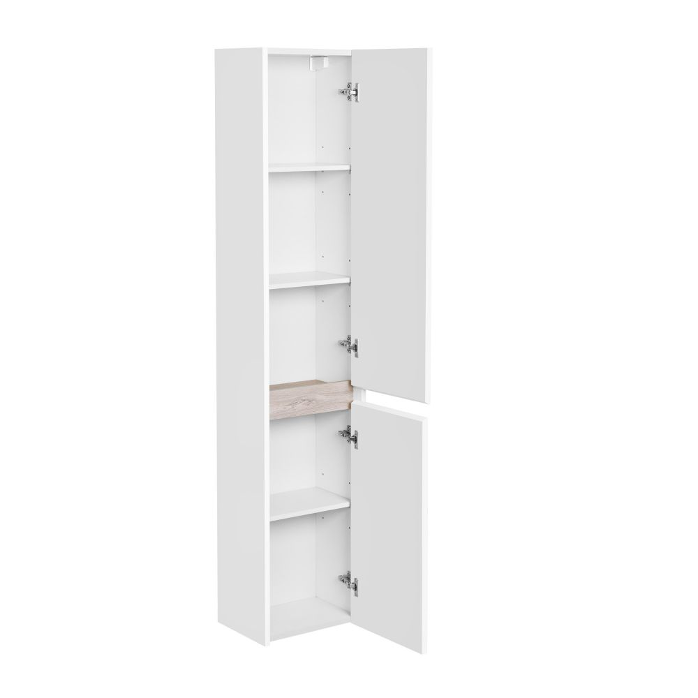 Шкаф-колонна Нортон в современном стиле выполнена из влагостойкой ЛДСП и высококачественной MDF. Внутреннее пространство колонны разделено на 2 отделения с помощью декоративной вставки в цвете дуб эндгрейн, створки оборудованы петлями с доводчиками для комфортного использования. За фасадами шкафа-колонны находятся вместительные отделения со стеклянными регулируемыми по высоте полками. Шкаф-колонна окрашена в белый глянцевый цвет полиэфирной краской ультрафиолетового отверждения, что обеспечивает повышенную износостойкость и долговечность
