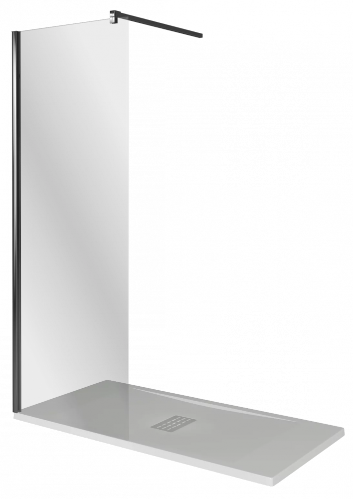 Душевые ограждения серия "WALK IN"  профиль ЧЁРНЫЙ прямое стекло со штангой в комплекте (без стыковочного профиля)
