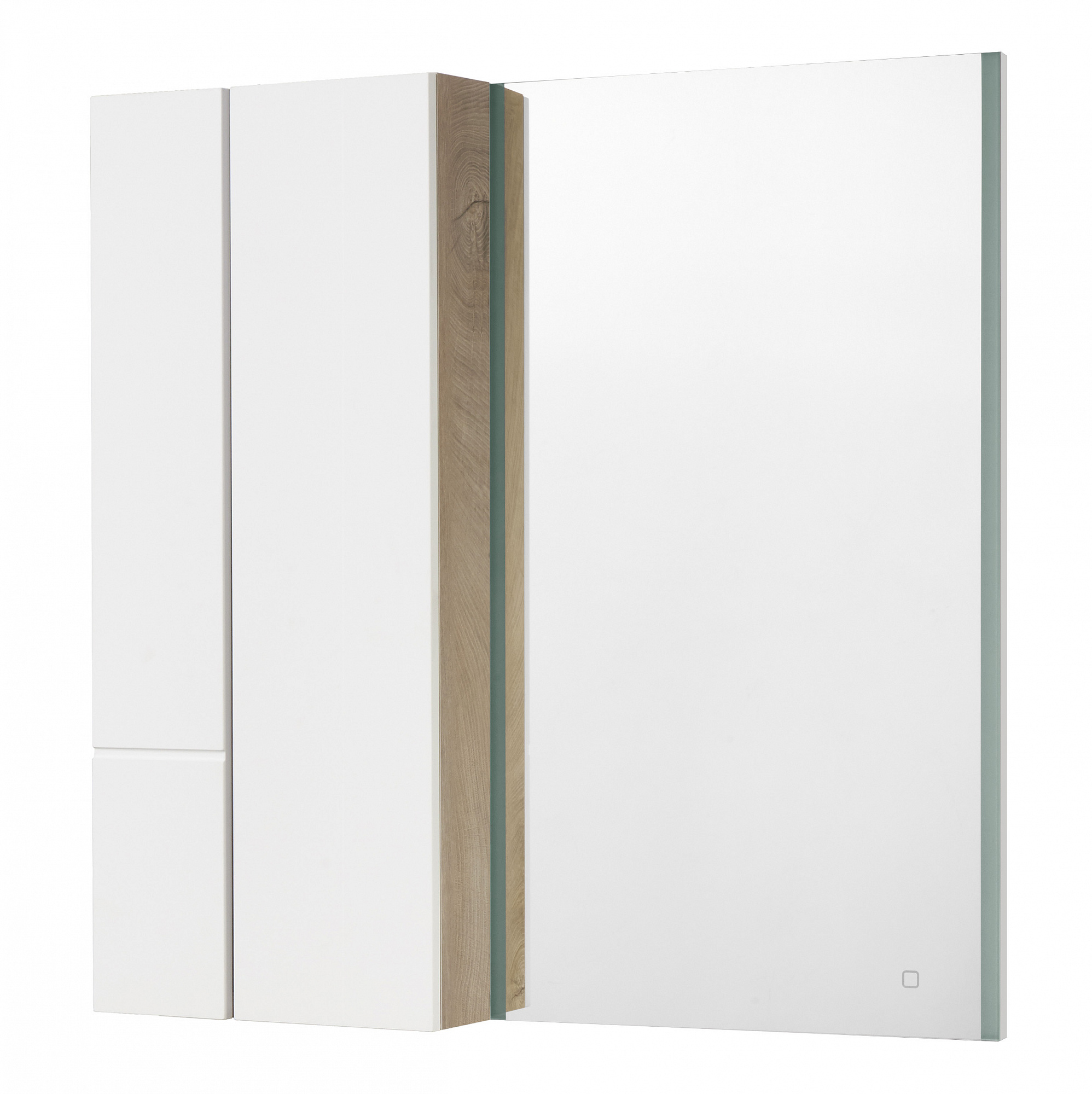 Зеркало Мишель 100 для тумбы Мишель 100 состоит из зеркала Мишель 57, оснащённого встроен-ными LED-светильниками по боковым сторонам и функционального модуля Мишель 43. Модуль 43 выполнен в дизайне тумбы: матовая пленка на двух распашных фасадах в сочетании с натуральным декором корпуса. Внутреннее пространство модуля поделено на ассиметричные секции, что позволяет разместить косметические различные косметические средства