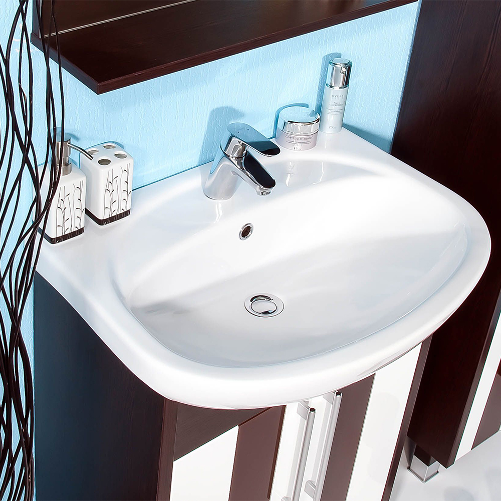 Оптимальный размер: мебельная раковина 65 см подходит для стандартных ванных комнат и тумб аналогичной ширины.