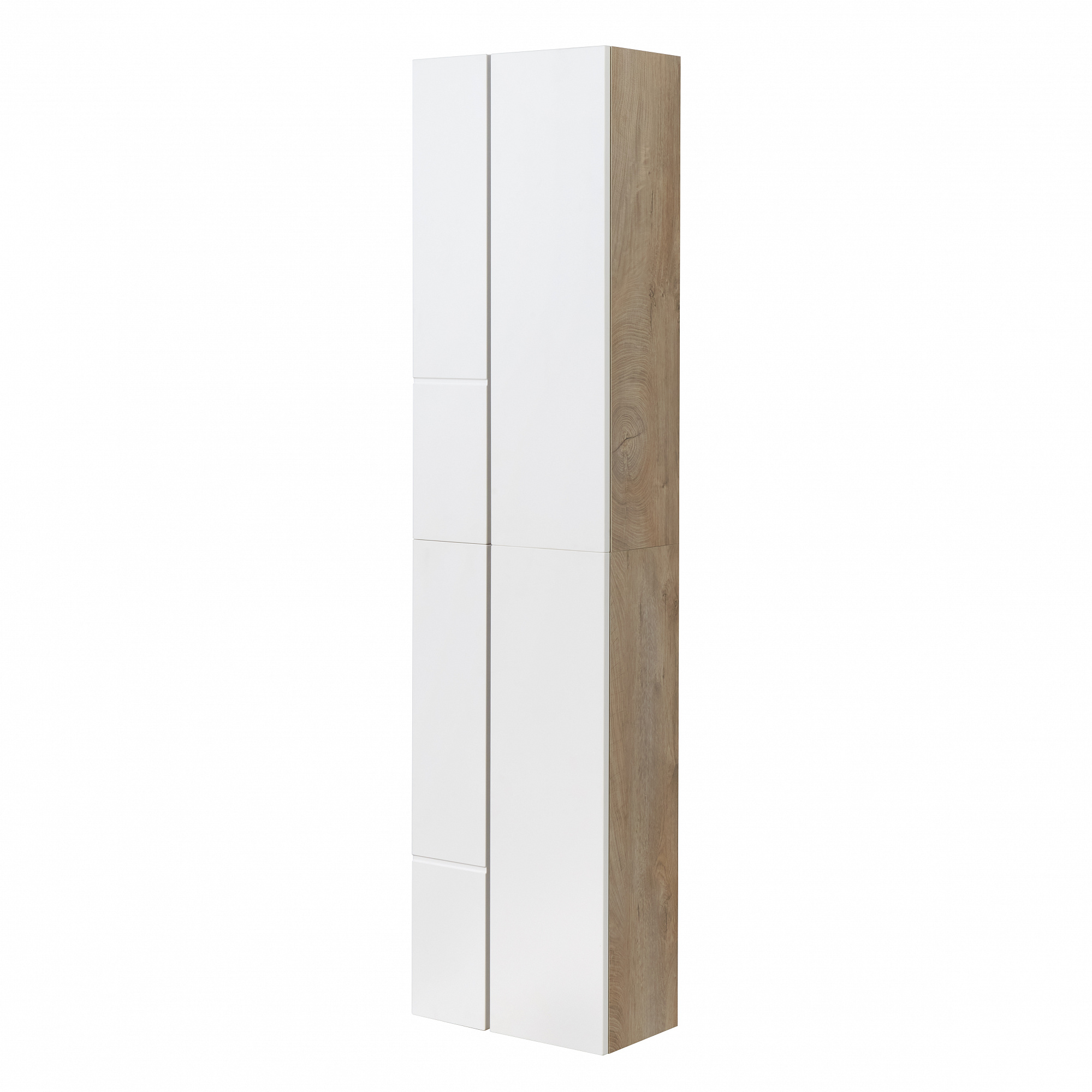 Дополняет коллекцию Мишель удобный шкафчик. При желании из двух шкафчиков можно составить вместительную шкаф-колонну. Все фасады оснащены системой открывания push-to-open. Дизайн шкафчика повторяет тумбу-умывальник: фасады в матовой пленке белый софт сочетаются с корпусом в декоре дуб эндгрейн