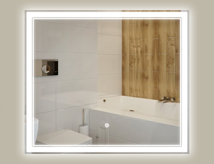 Зеркало Bali с холодной LED подсветкой со скругленными углами, светопропускным коробом и сенсорным выключателем