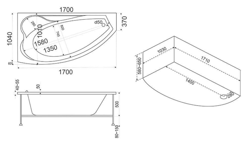 Акриловая угловая ванна BAS Николь 170х102 — просторная модель для комфортного отдыха. Левосторонняя асимметричная ванна изготовлена из качественного акрила. Ширина 102 см и длина 170 см создают увеличенное внутреннее пространство. Глубина 44 см и объем 290 л обеспечивают максимальный комфорт при принятии ванны. Произведено в среднем ценовом сегменте. Угловая конструкция оптимально использует площадь помещения. Фронтальная панель и слив-перелив приобретаются отдельно.