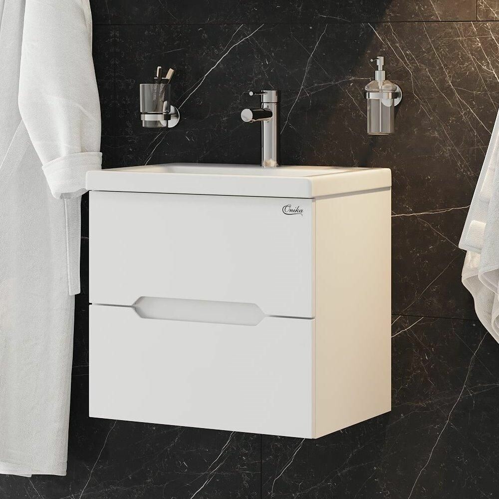 Подвесная тумба для ванной комнаты Onika Айленд 50 сочетает в себе стильный минималистичный дизайн, белую глянцевую поверхность и высочайшее качество исполнения.