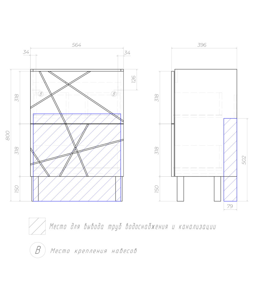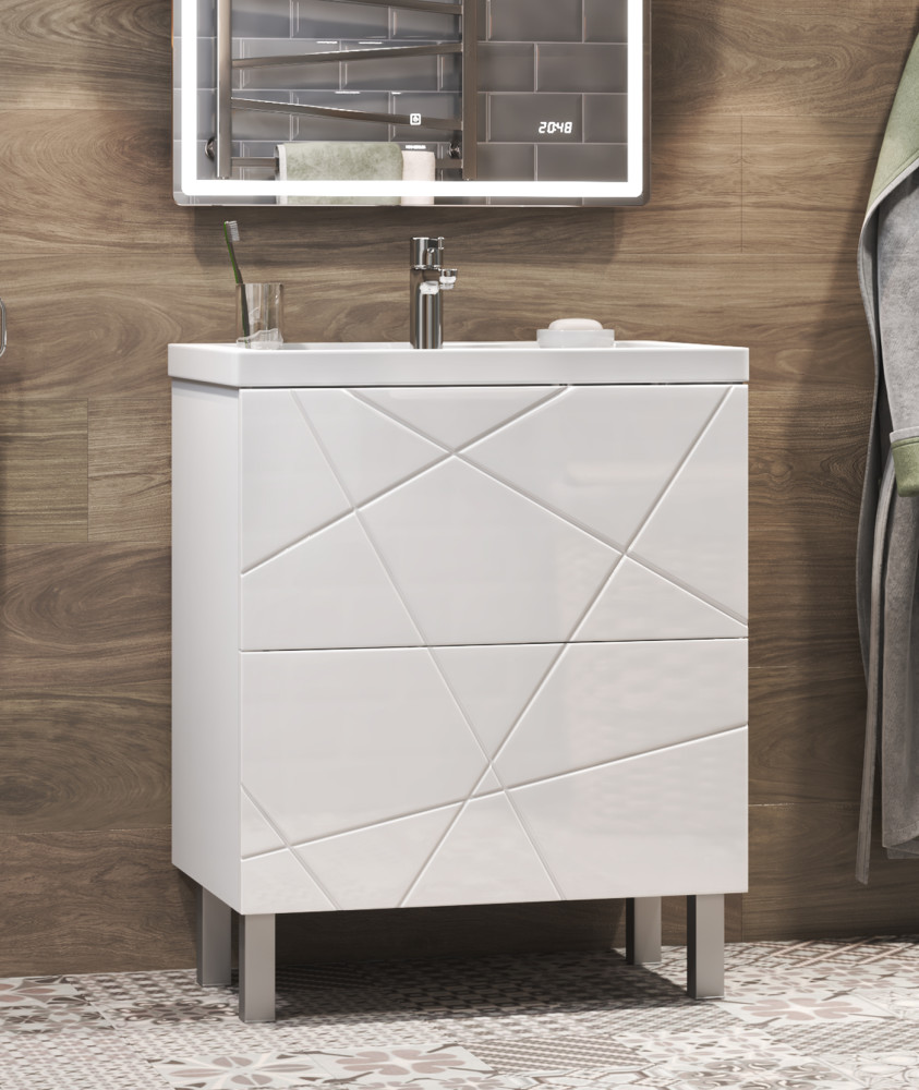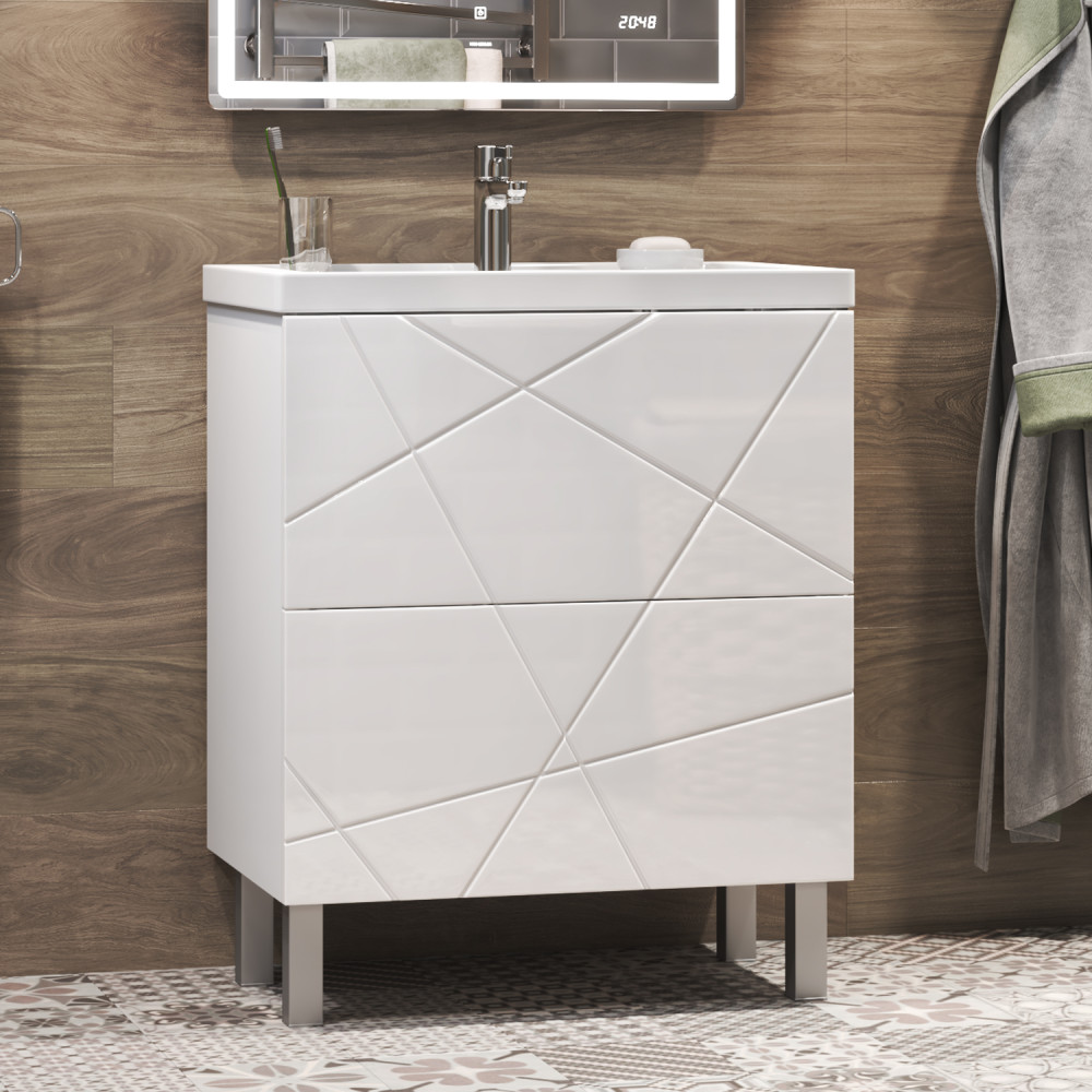 2 выдвижных ящика, скрытые направляющие, открывание нажатием "push-to-open", 2 навеса, 2 опоры квадратные регулируемые