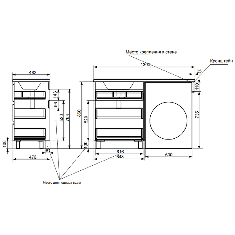 -Подходит для установки над стиральной машинкой, что делает её удобным вариантом для организации пространства.