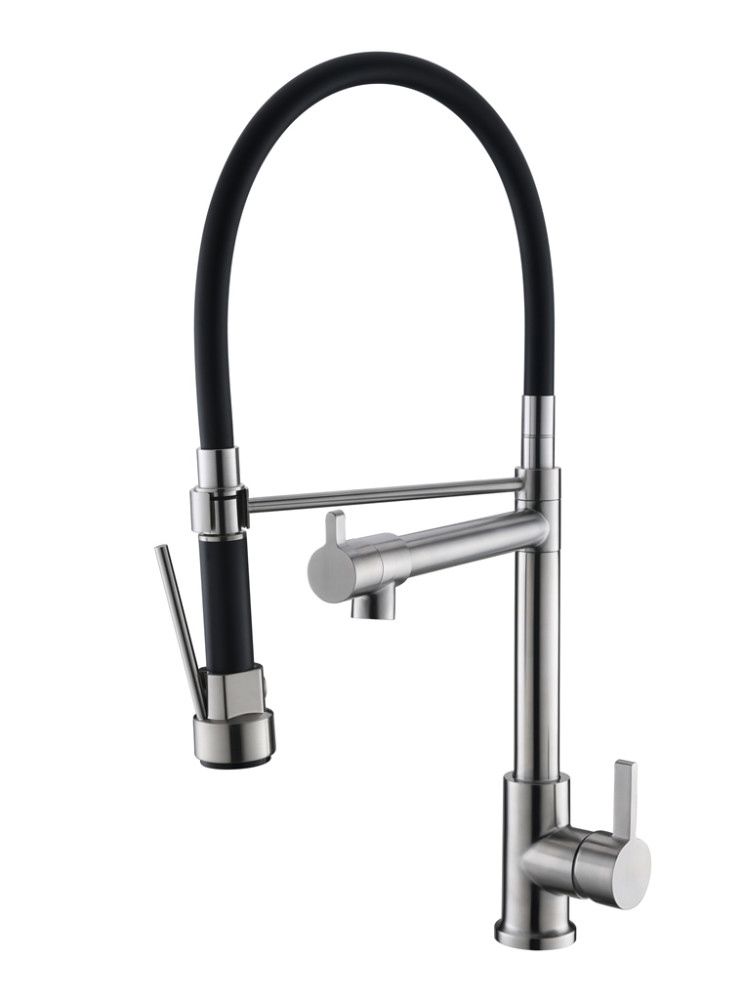Смеситель для кухни с поворотным и гибким изливом, нержавеющая сталь, исполнение сатин BB-LAM50-IN