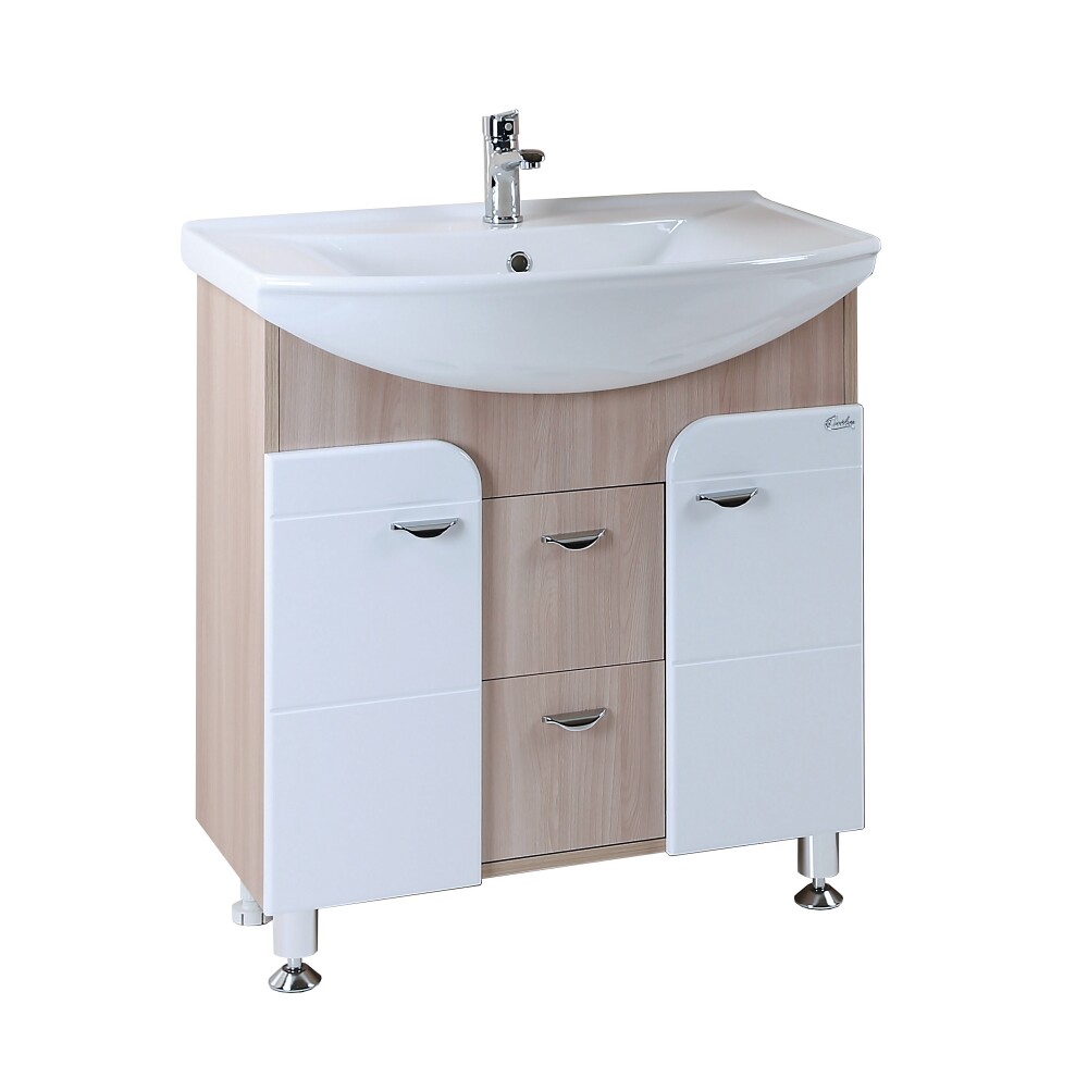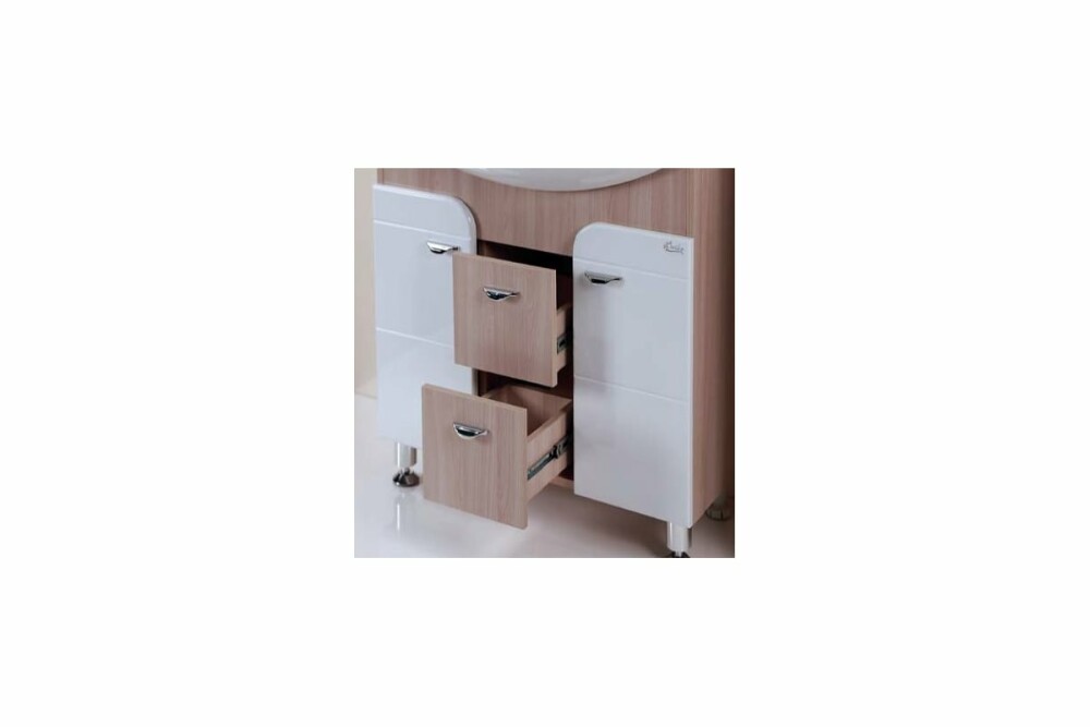 В оригинальной напольной тумбе Onika СТИЛЬ 60.13 удачно сочетаются контрастные цвета и фактуры: белый глянец на фоне светлого натурального дерева очень эффектно смотрится практически в любых интерьерах ванной комнаты. Два выдвижных ящика посередине и большие ниши с распашными дверцами по бокам - отличное место для хранения необходимых в ванной комнате вещей. Ящики тумбы оснащены направляющими полного выдвижения, а дверца снабжена системой плавного закрывания. Корпус тумбы выполнен из ЛДСП, фасад - из ЛДСП и МДФ в пленке, устойчивых к механическим воздействиям, перепадам температур и высокой влажности. Четыре хромированных ручки и четыре ножки (2 декоративных хромированных и 2 пластиковых) идут в комплекте с тумбой